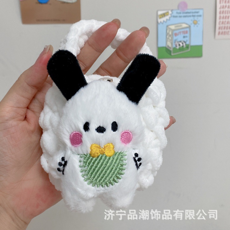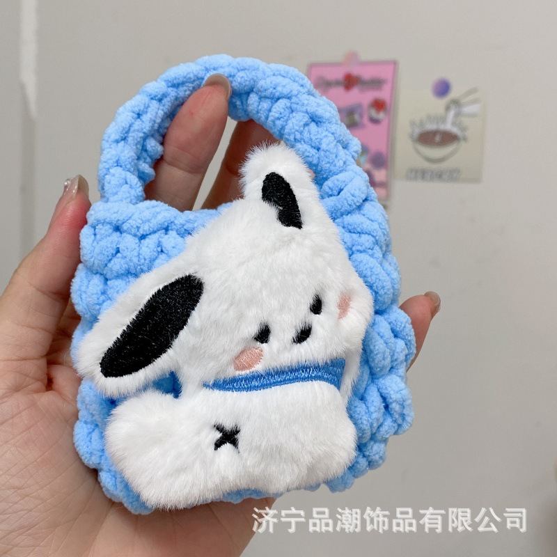수제 크로 셰 뜨개질 귀여운 토끼 헤어 이어폰 가방 창조적 인 커플 지갑 동전 지갑 짠 이어폰 가방 도매