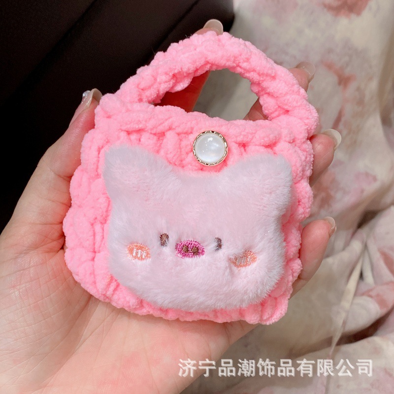 • LQ36 # 핑크 돼지 니트 헤드폰 가방