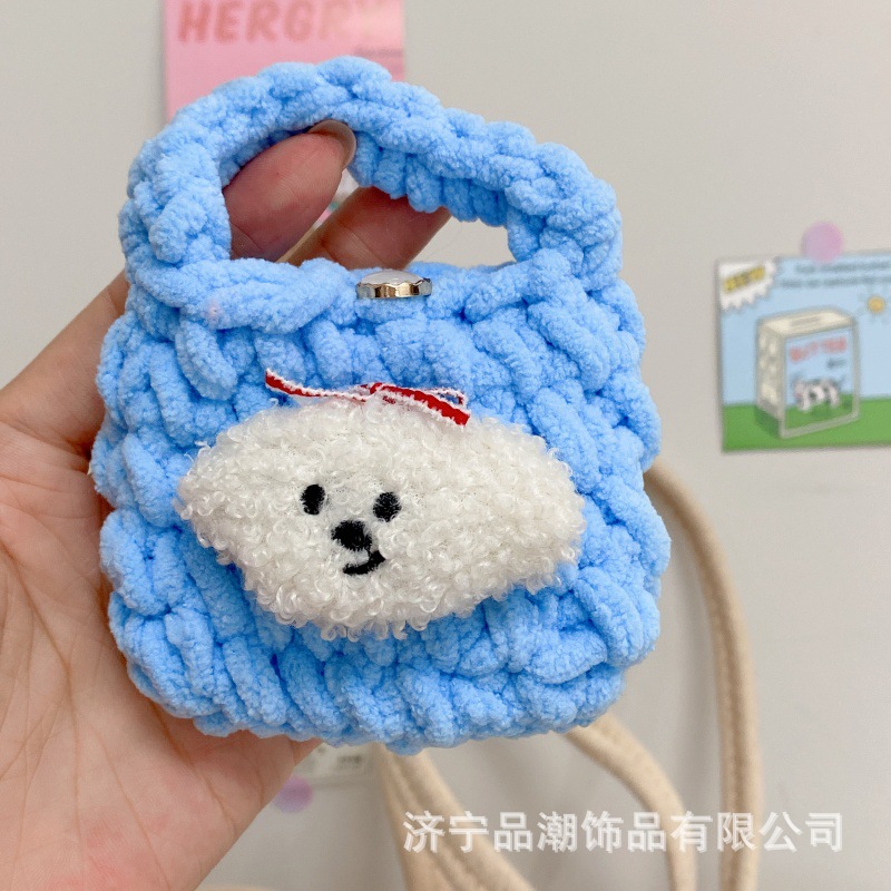 • LQ31 # 블루 곱슬 니트 헤드폰 가방