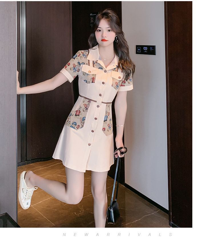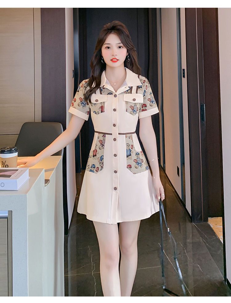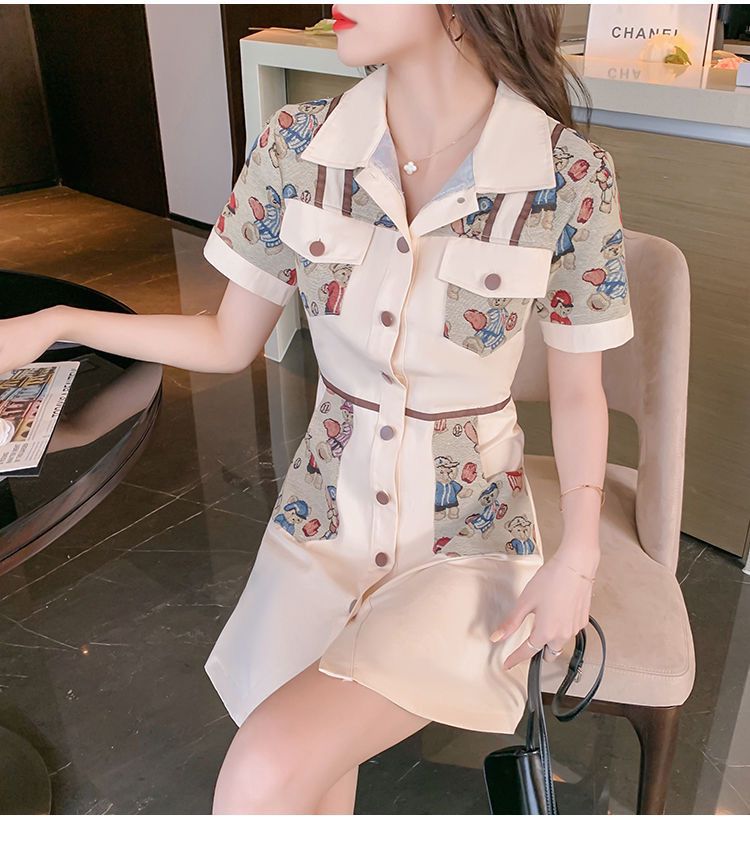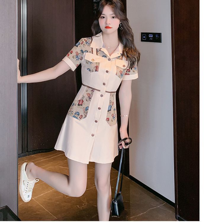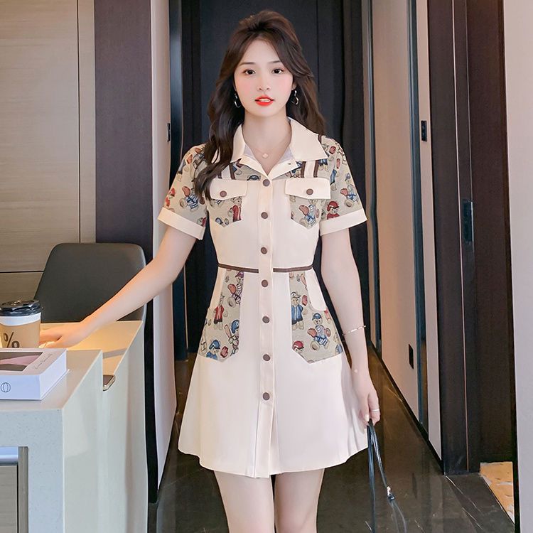 2025년 신상 디자인의 작은 프랑스풍 POLO 카라 원피스 여성 패션 허리 슬림핏 우아한 반팔 원피스스토어 가기