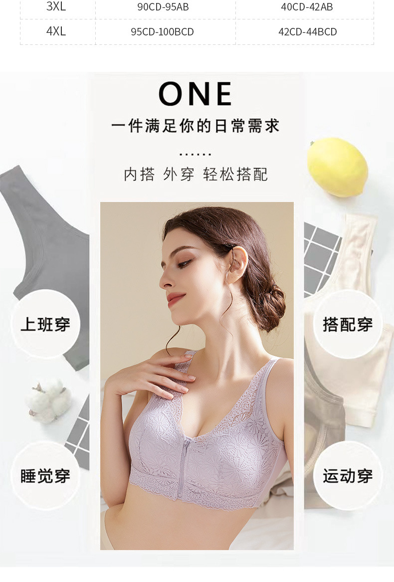 새로운 프론트 지퍼 대형 컵 튜브 탑 푸시 업 섹시 풀 컵 얇은 스포츠 스틸 링 플러스 사이즈 속옷 2433