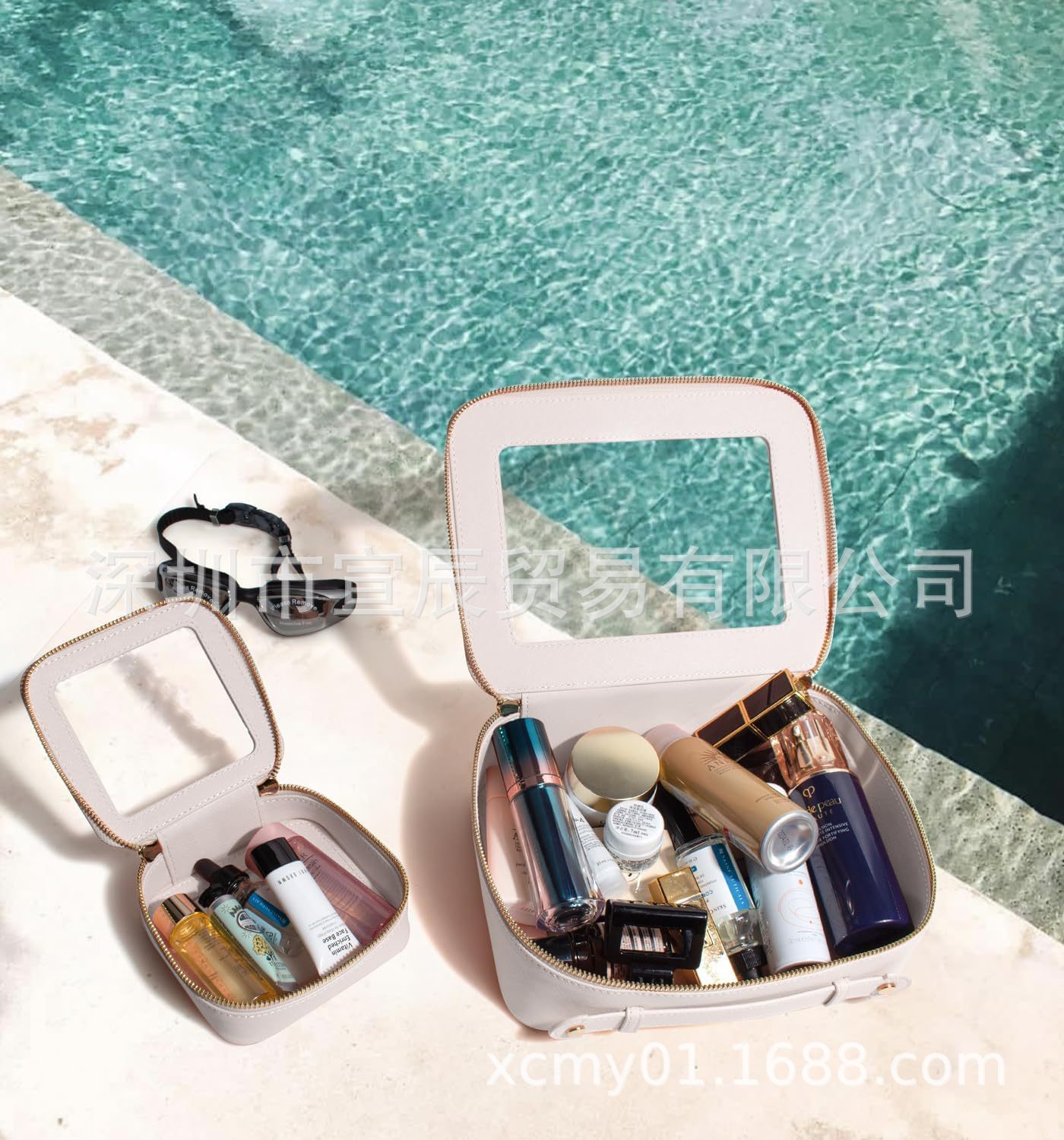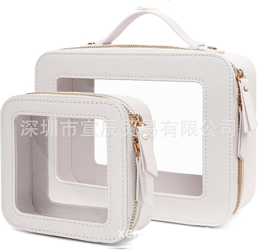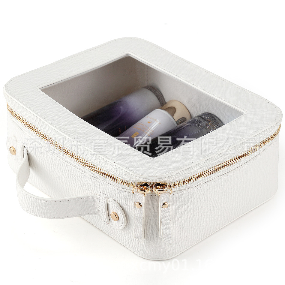 국경 간 재고 투피스 하이 엔드 여성 여행 보관 스킨 케어 더블 투명 휴대용 PU 가죽 화장품 가방스토어 가기
