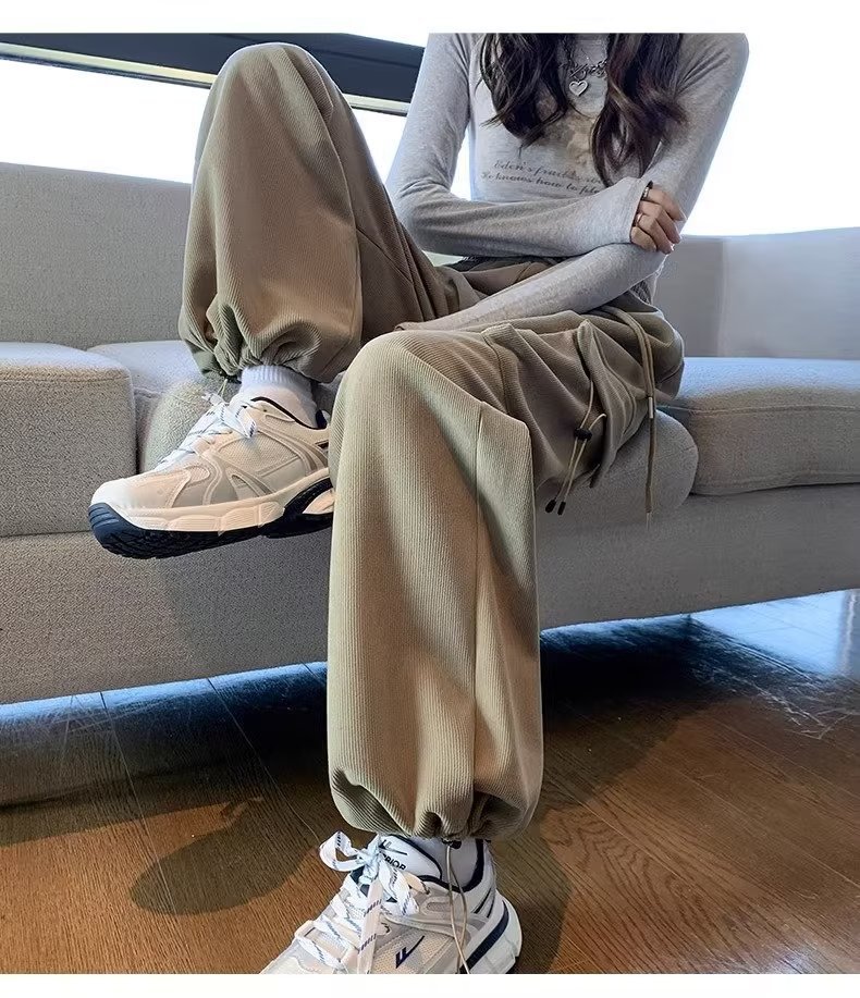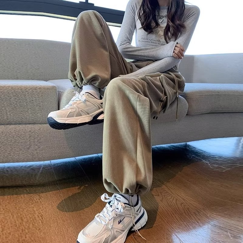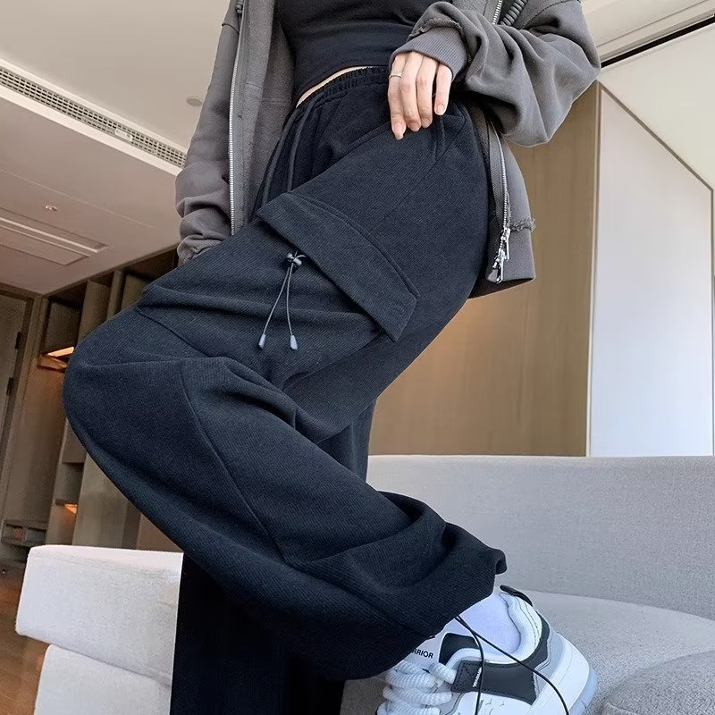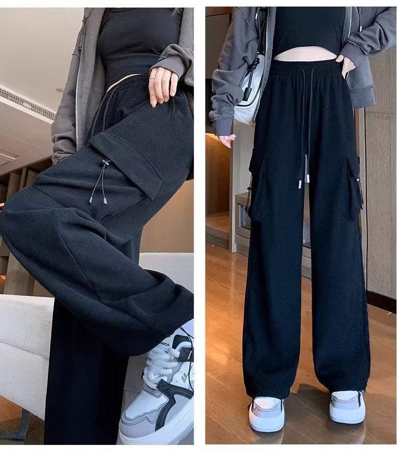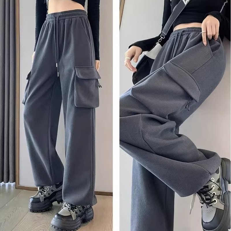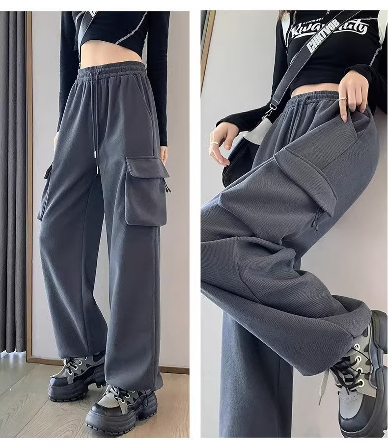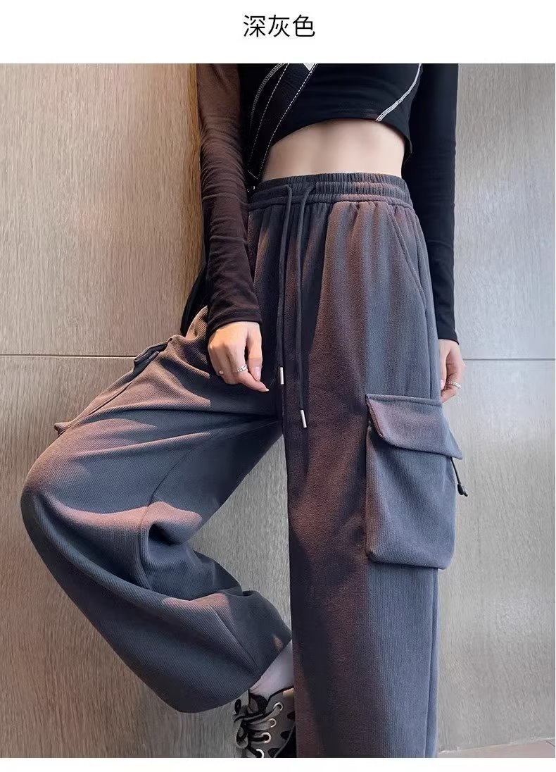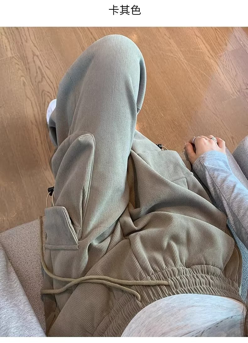 카키스 미국식 툴링 와이드 레그 팬츠 여성용 가을과 겨울 새로운 유럽 코튼 벨벳 마운틴 팬츠 번치 발 야외 스포츠 바지