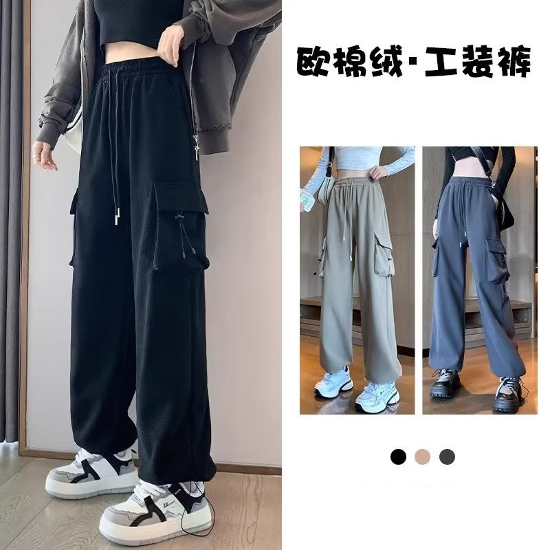 카키스 미국식 툴링 와이드 레그 팬츠 여성용 가을과 겨울 새로운 유럽 코튼 벨벳 마운틴 팬츠 번치 발 야외 스포츠 바지스토어 가기