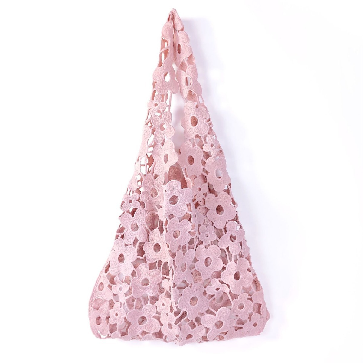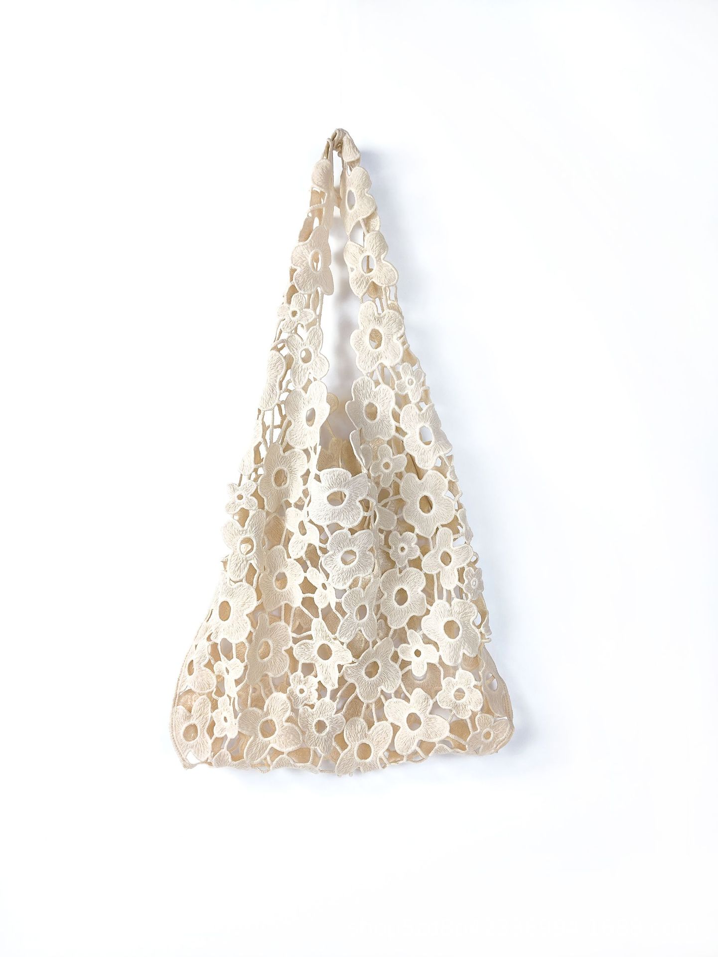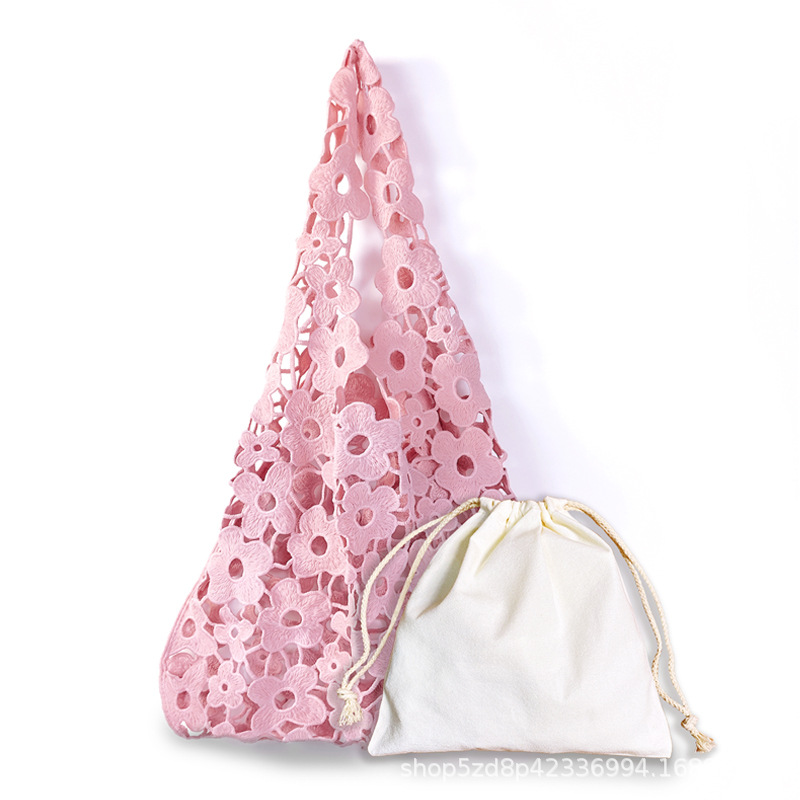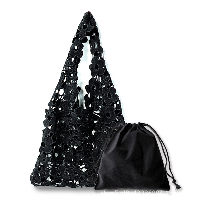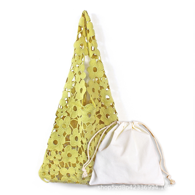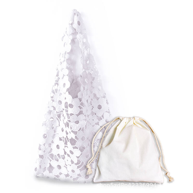 한국 스타일 대용량 핸드백 여성 할로우 꽃 헝겊 가방 대학 스타일 캐주얼 자수 어깨 언더암 가방