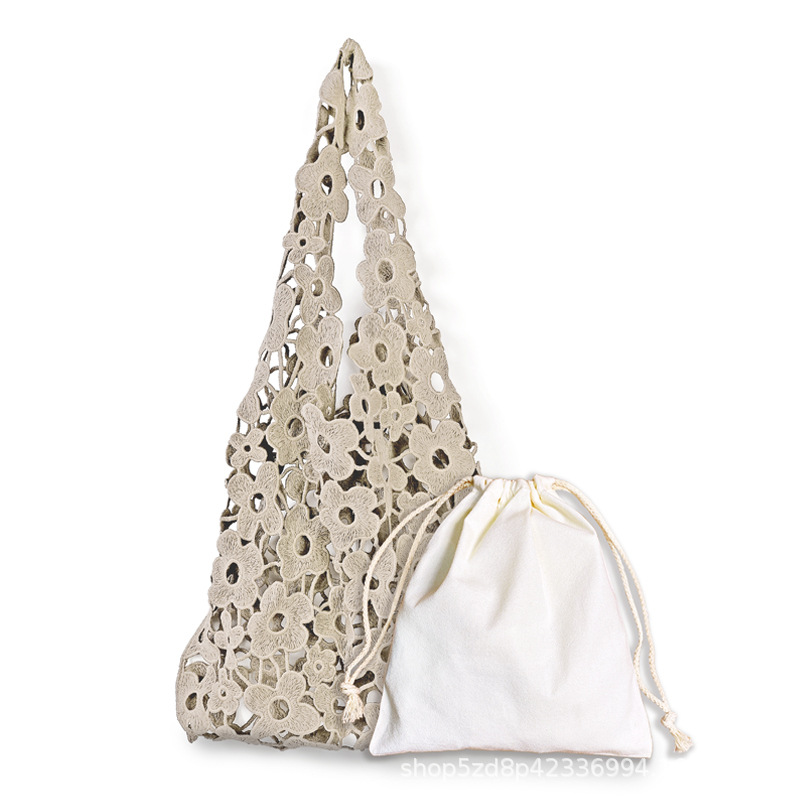 한국 스타일 대용량 핸드백 여성 할로우 꽃 헝겊 가방 대학 스타일 캐주얼 자수 어깨 언더암 가방스토어 가기