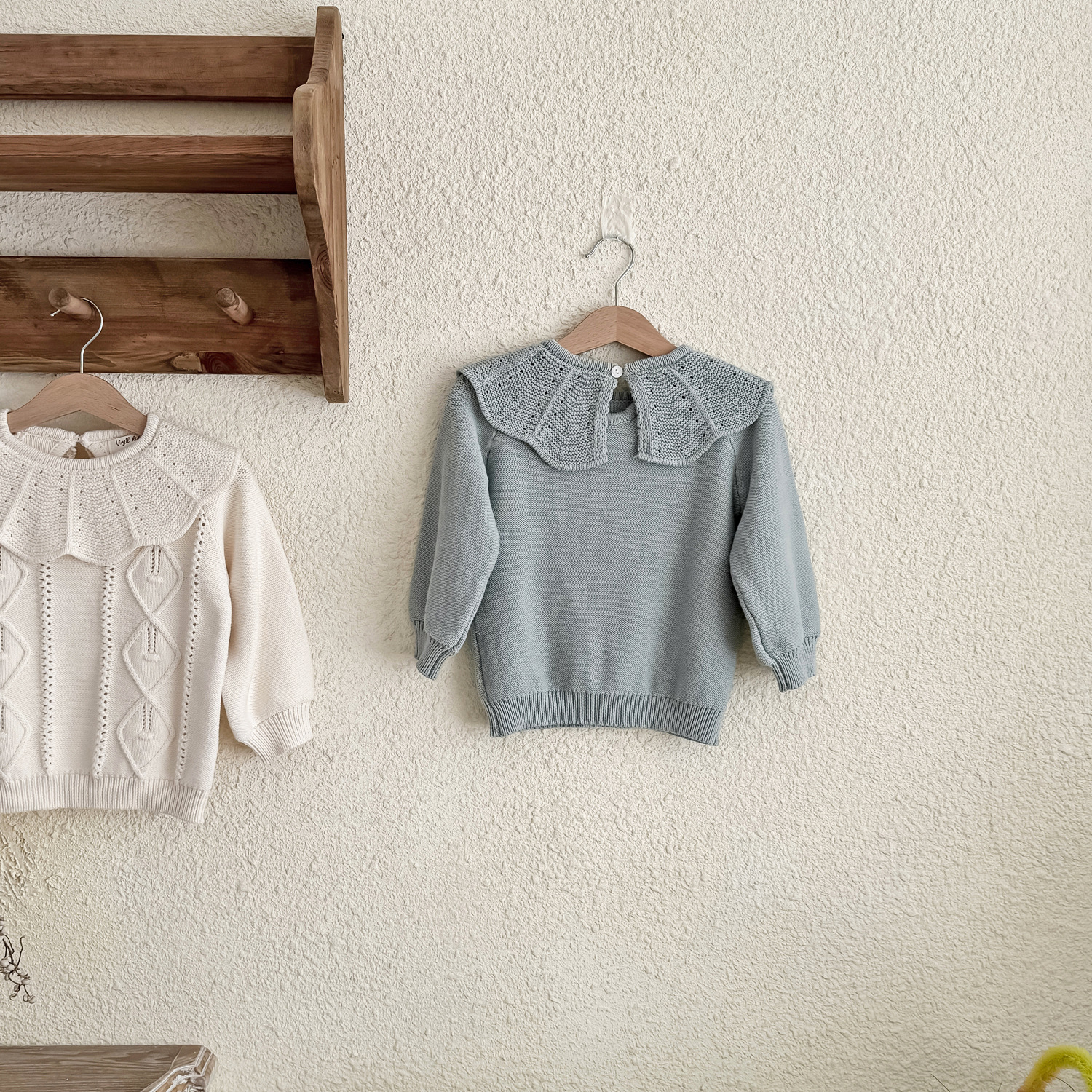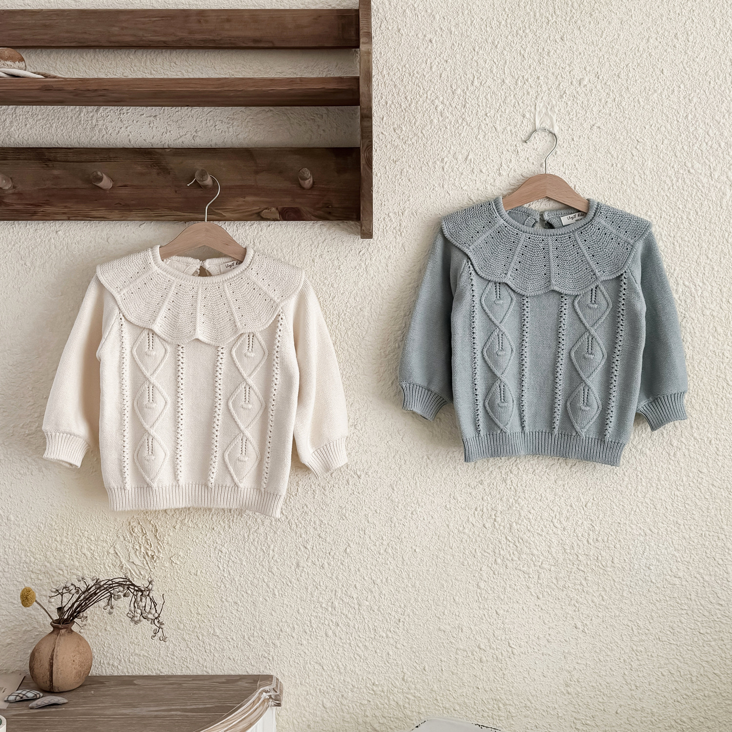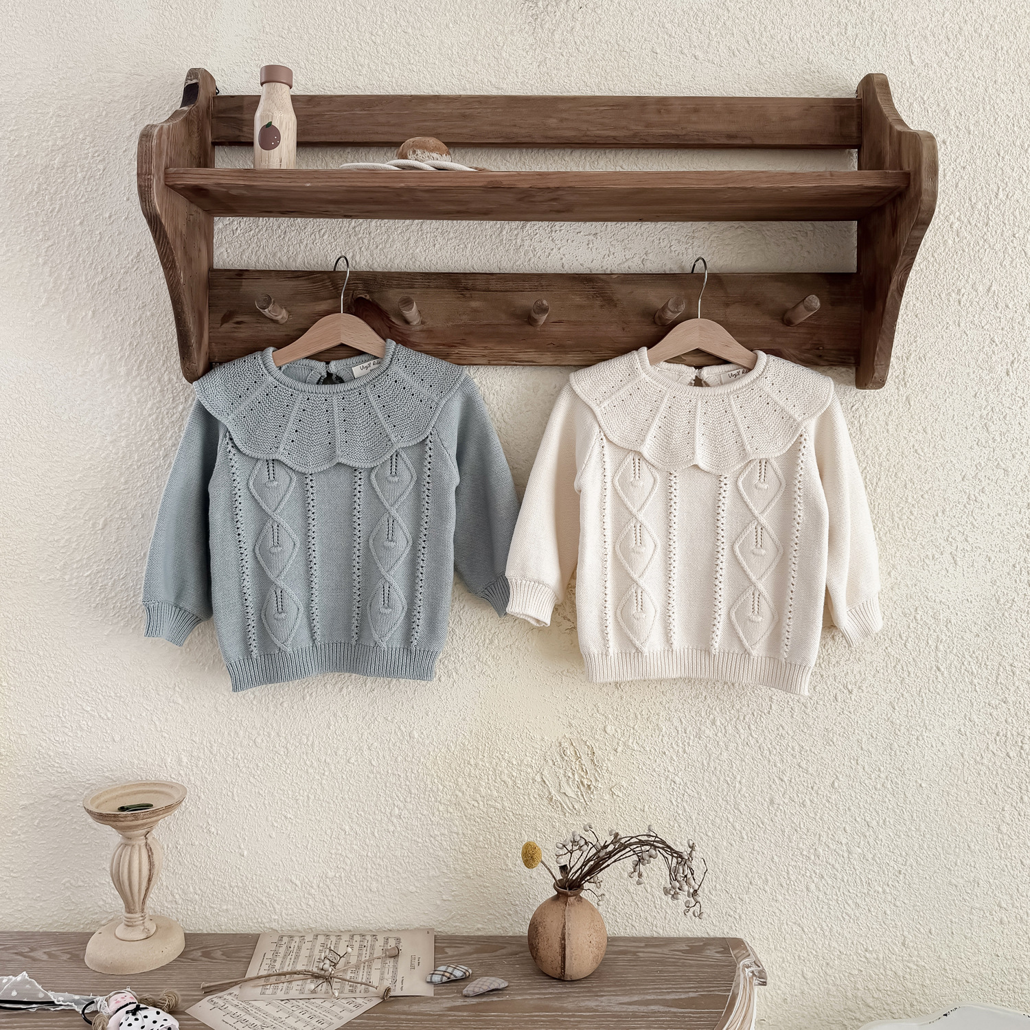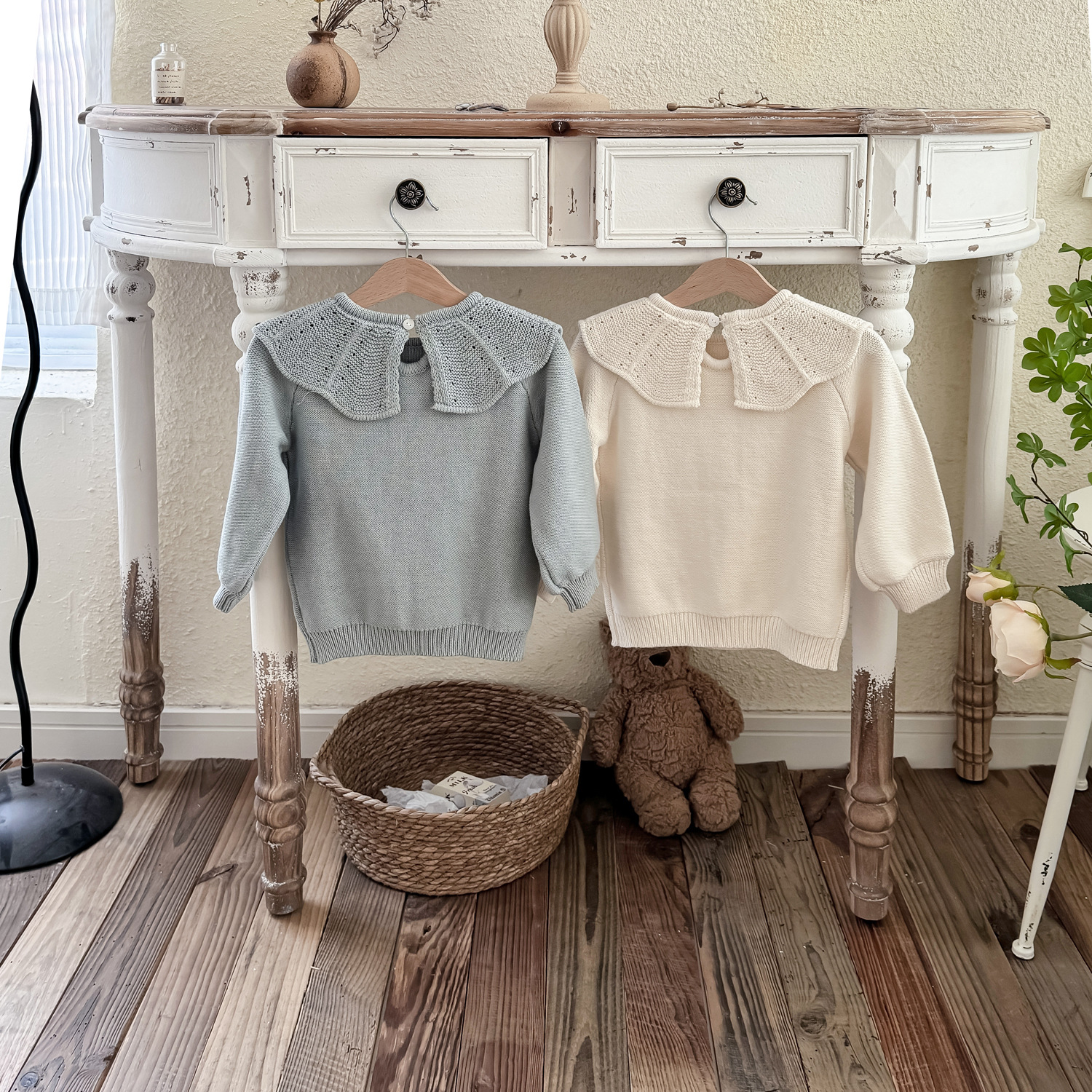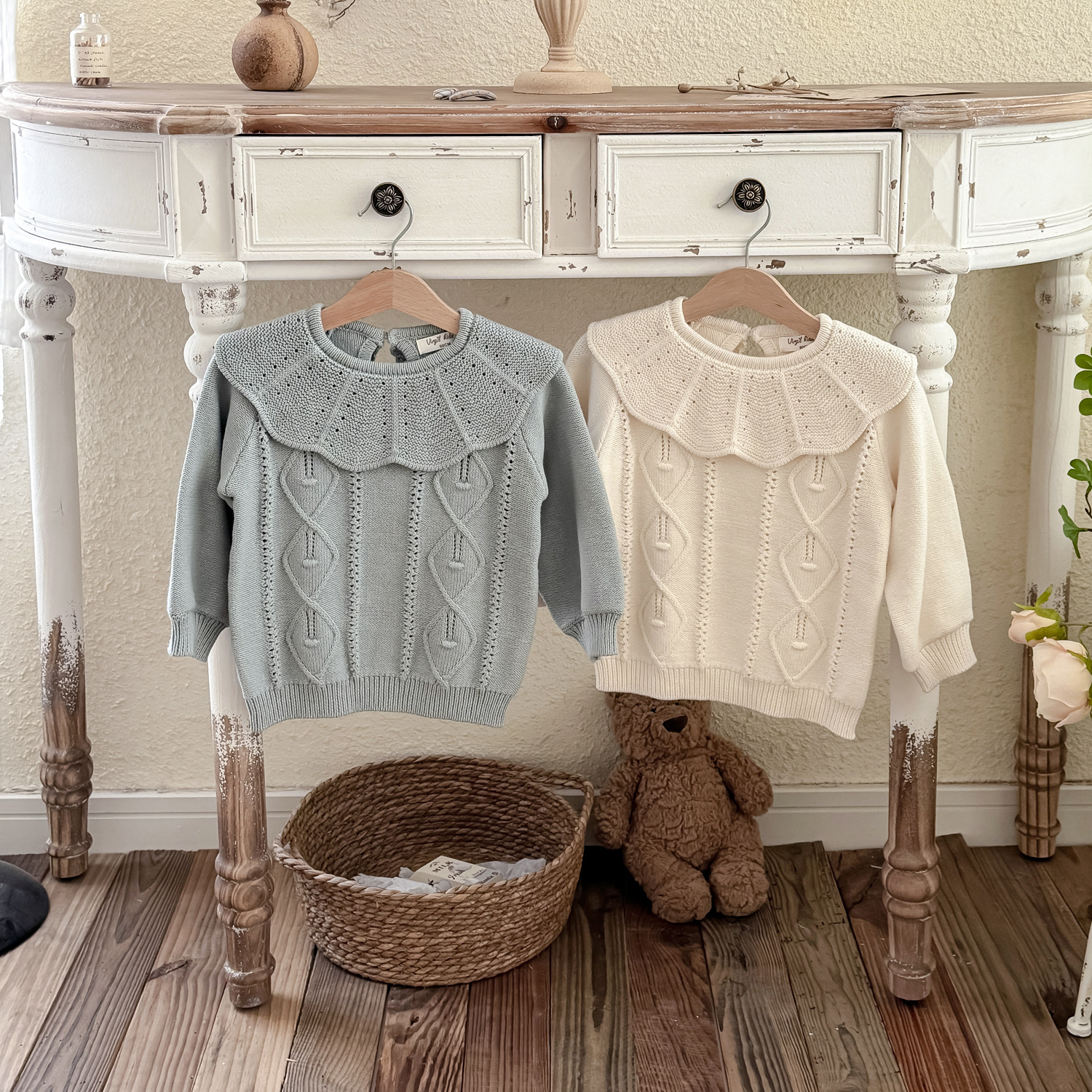 가을과 겨울 새로운 소녀 스웨터 Ins 아기 소녀 귀여운 연꽃 잎 고리 풀오버 스웨터 면 원사 레이스 칼라 스웨터
