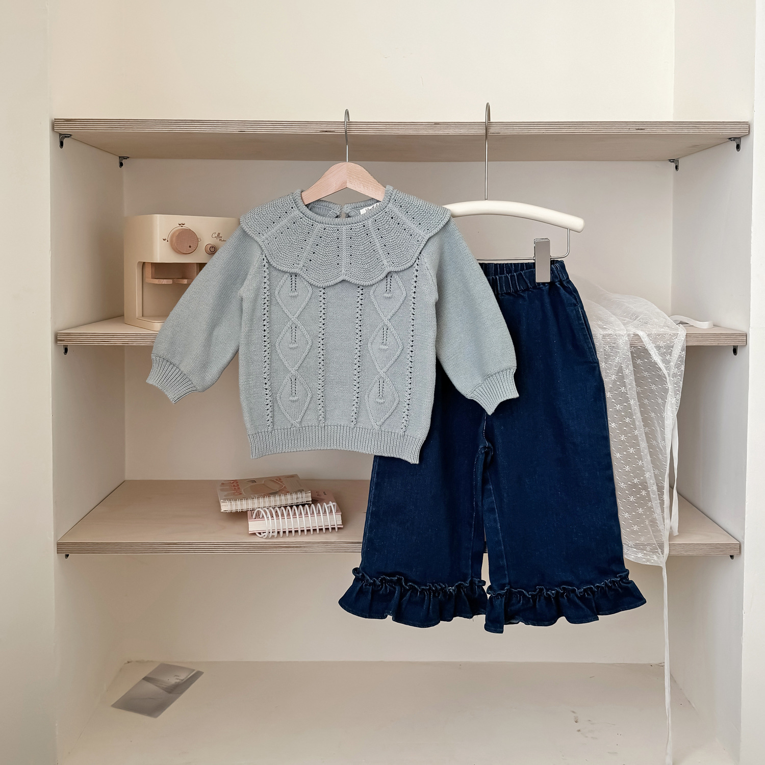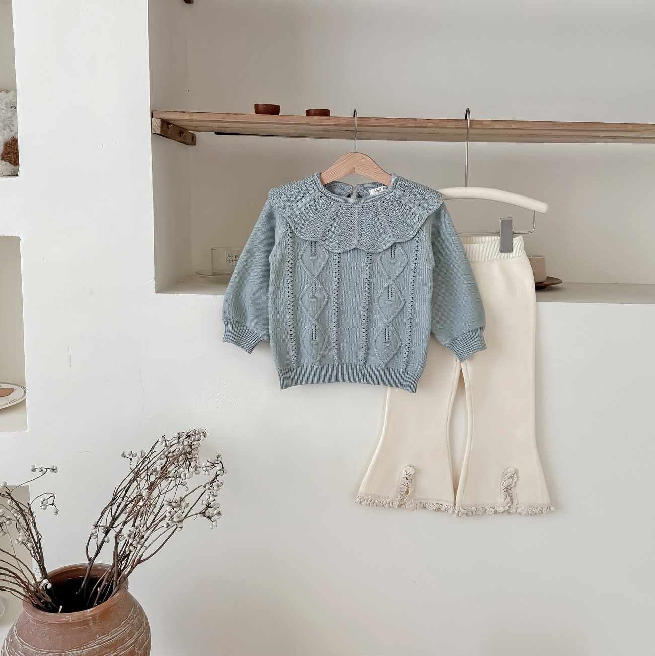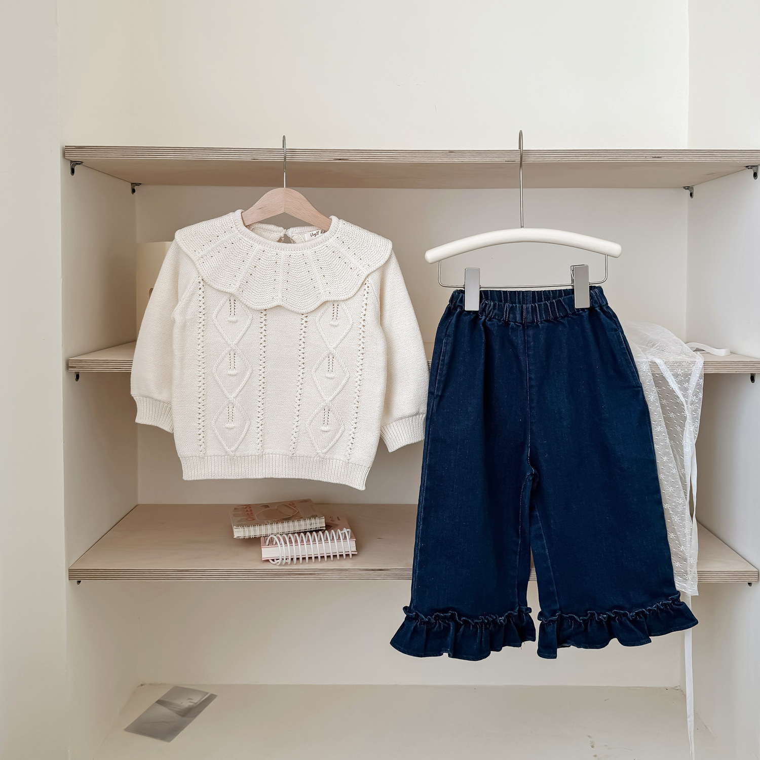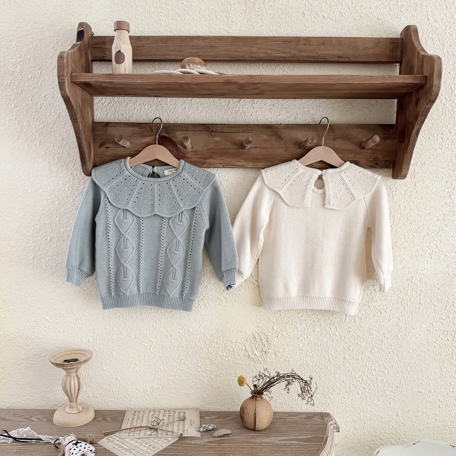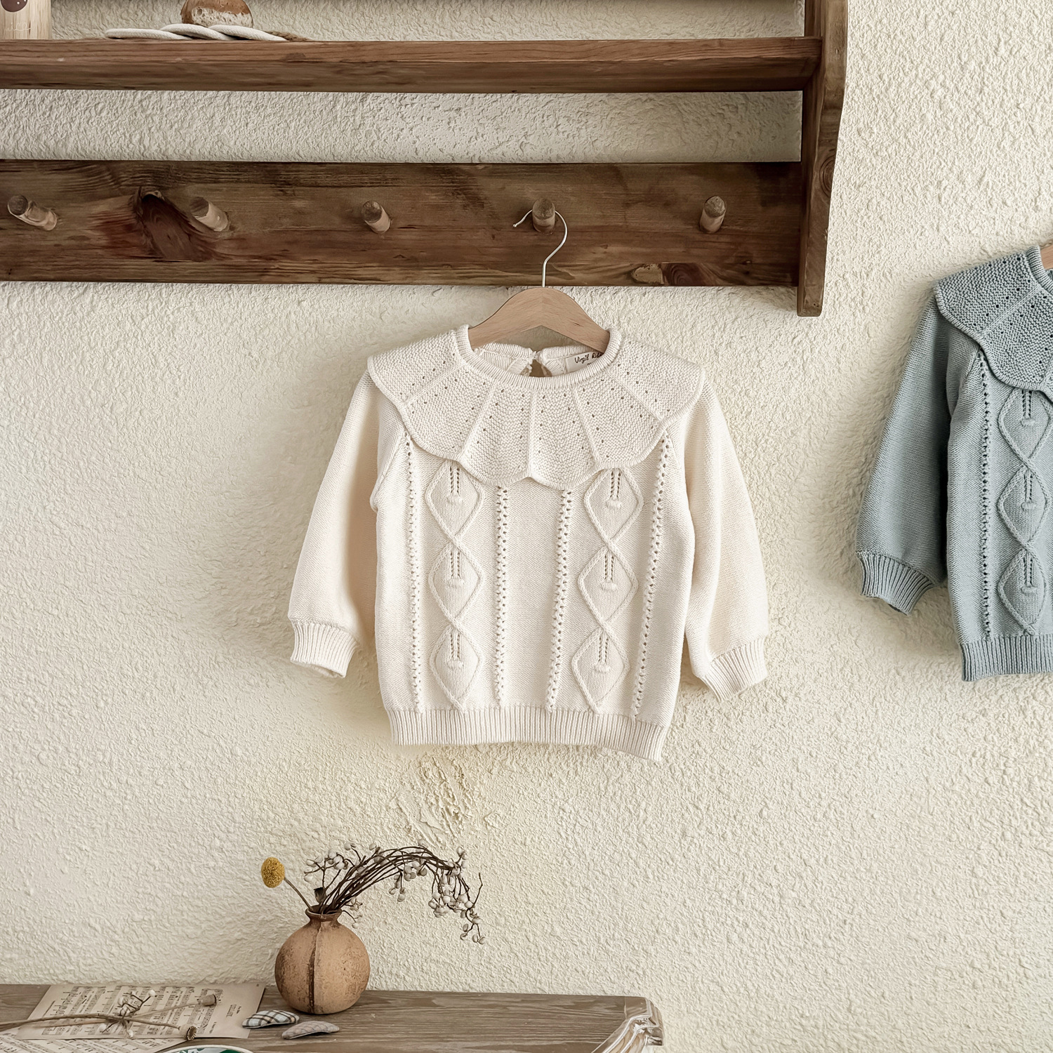 가을과 겨울 새로운 소녀 스웨터 Ins 아기 소녀 귀여운 연꽃 잎 고리 풀오버 스웨터 면 원사 레이스 칼라 스웨터