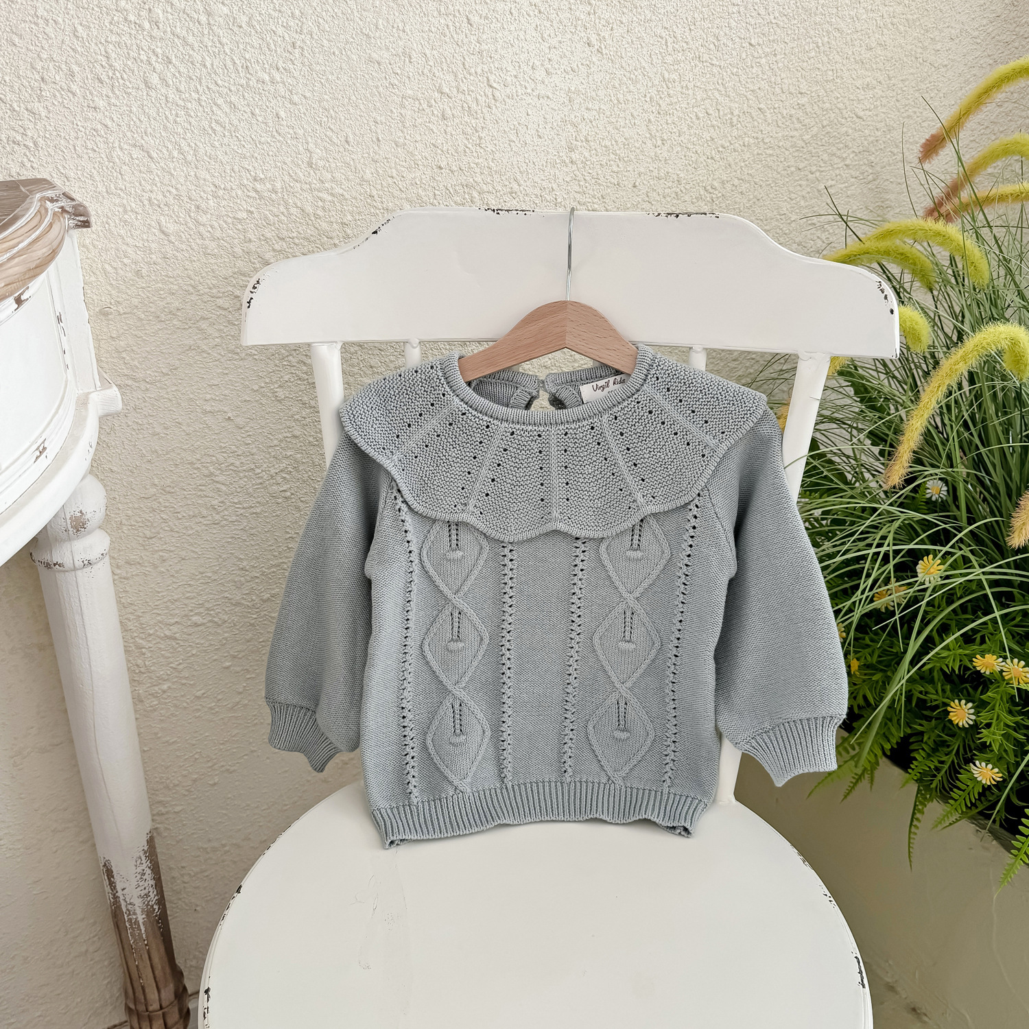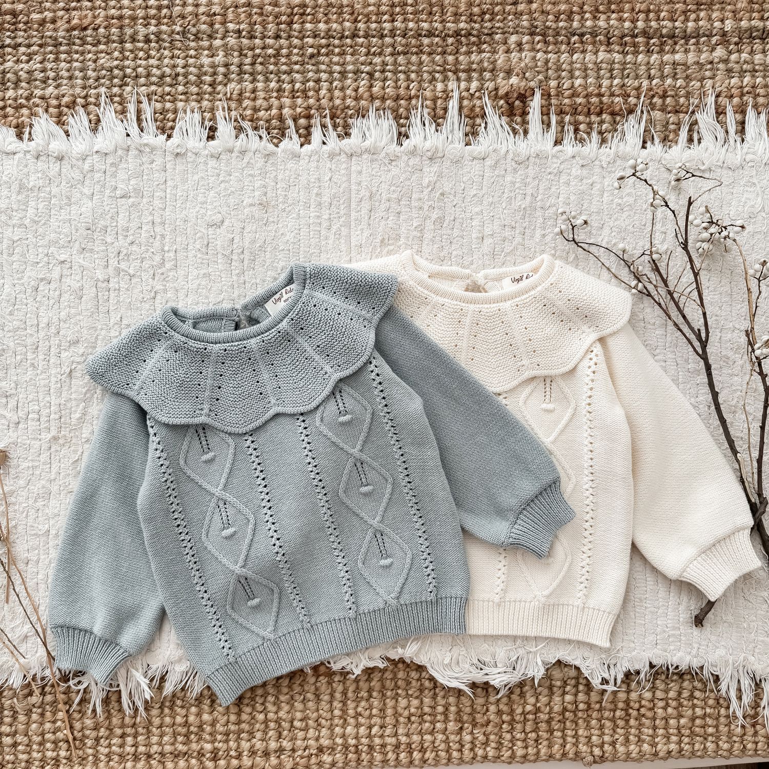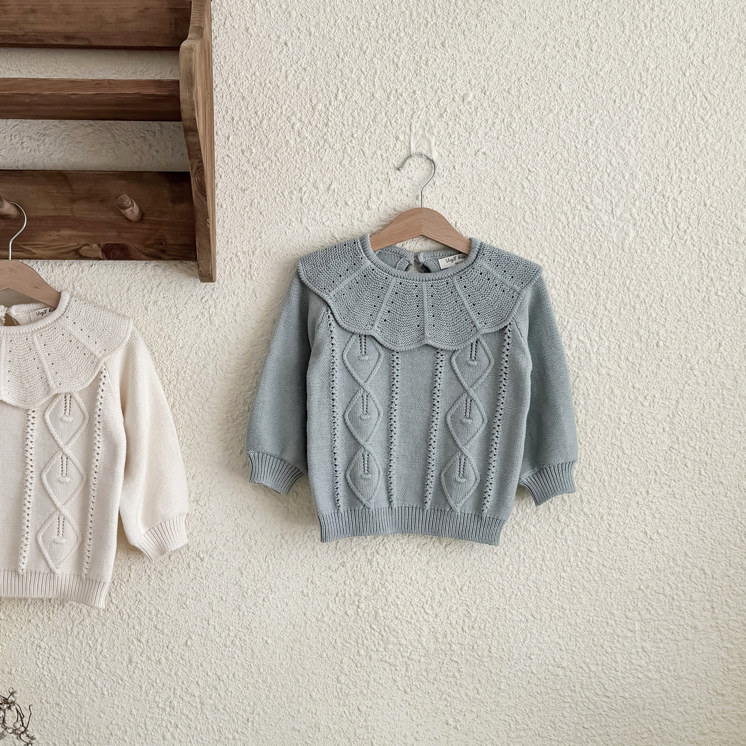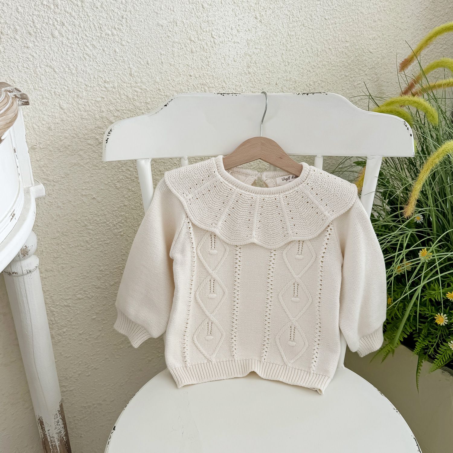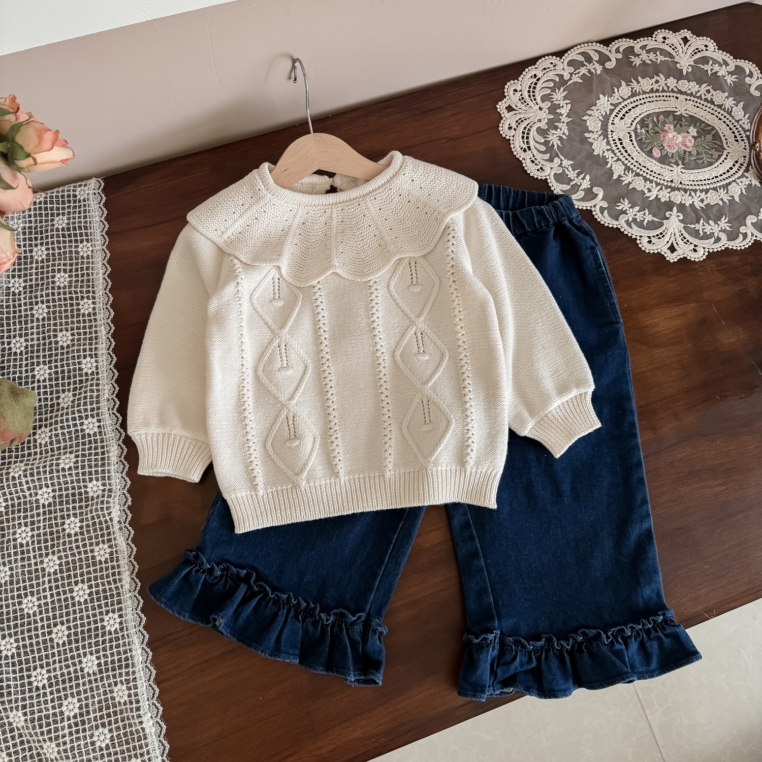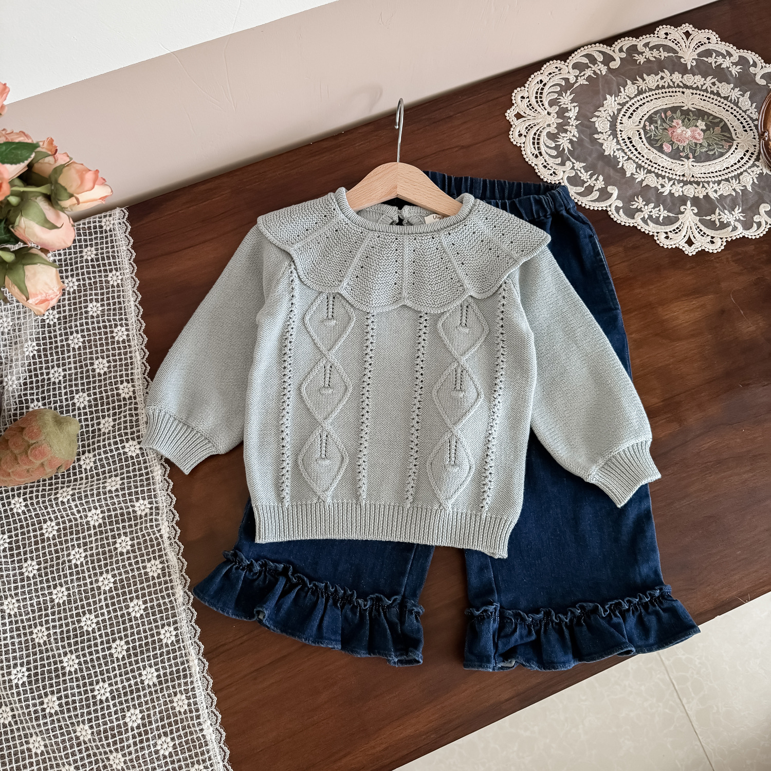 가을과 겨울 새로운 소녀 스웨터 Ins 아기 소녀 귀여운 연꽃 잎 고리 풀오버 스웨터 면 원사 레이스 칼라 스웨터