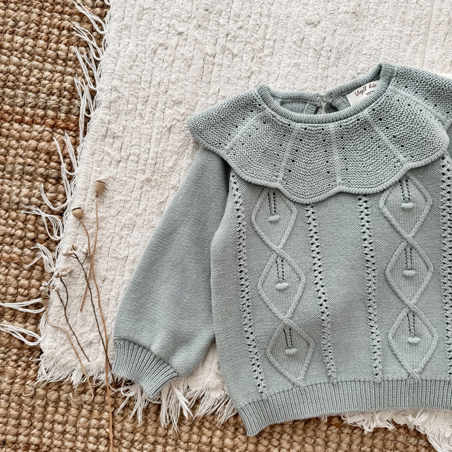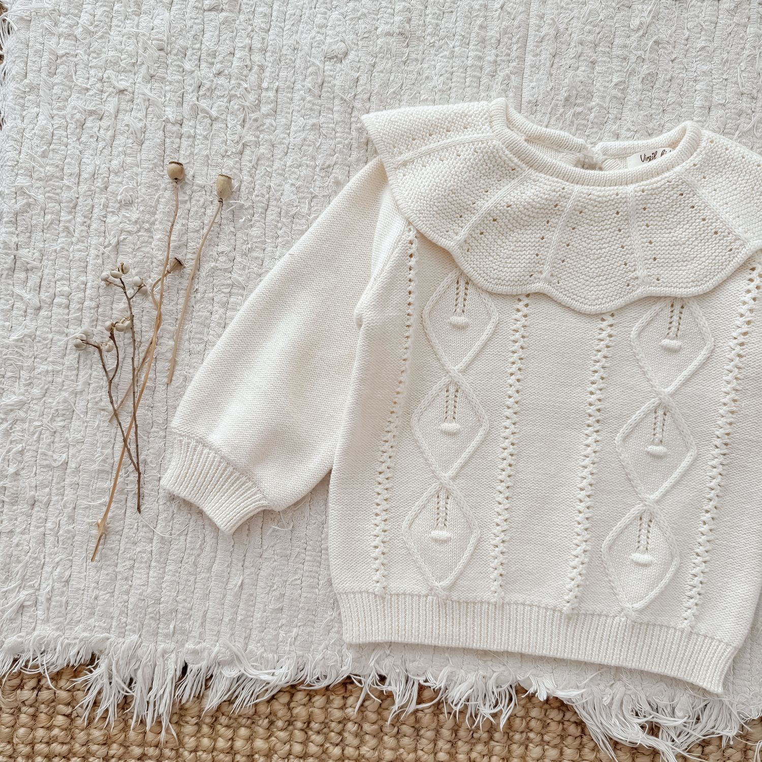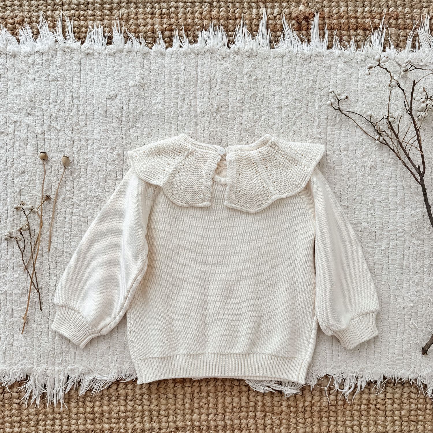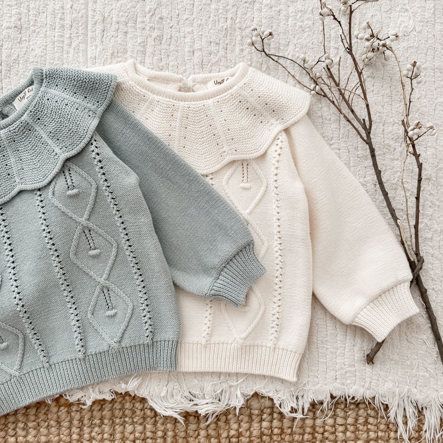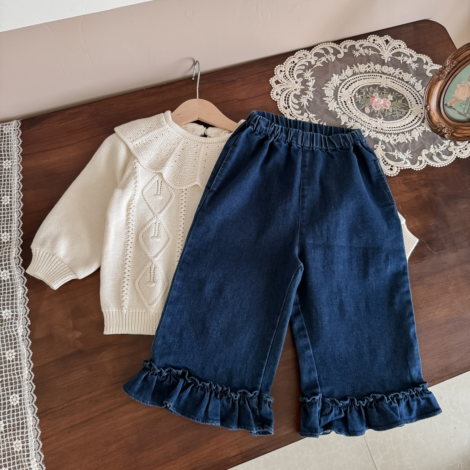 가을과 겨울 새로운 소녀 스웨터 Ins 아기 소녀 귀여운 연꽃 잎 고리 풀오버 스웨터 면 원사 레이스 칼라 스웨터