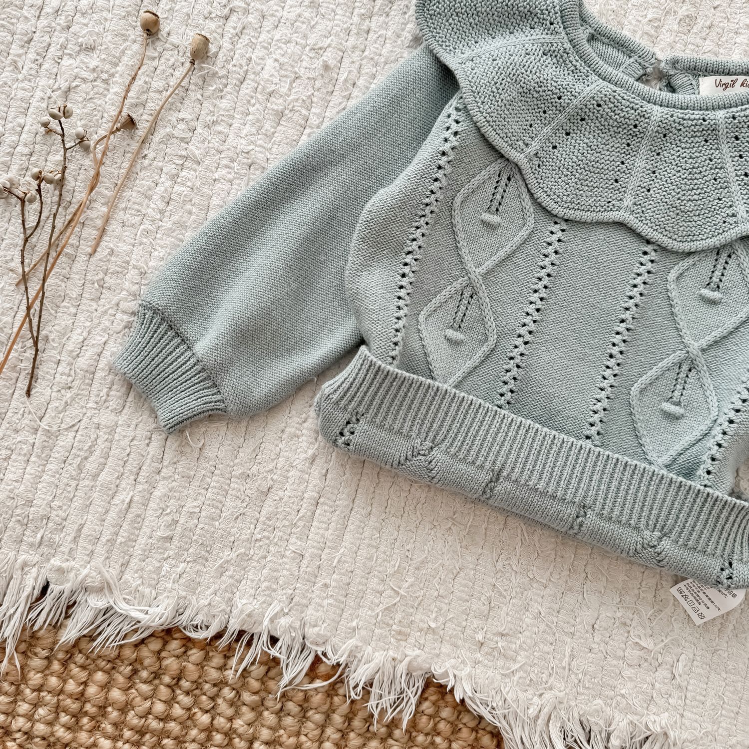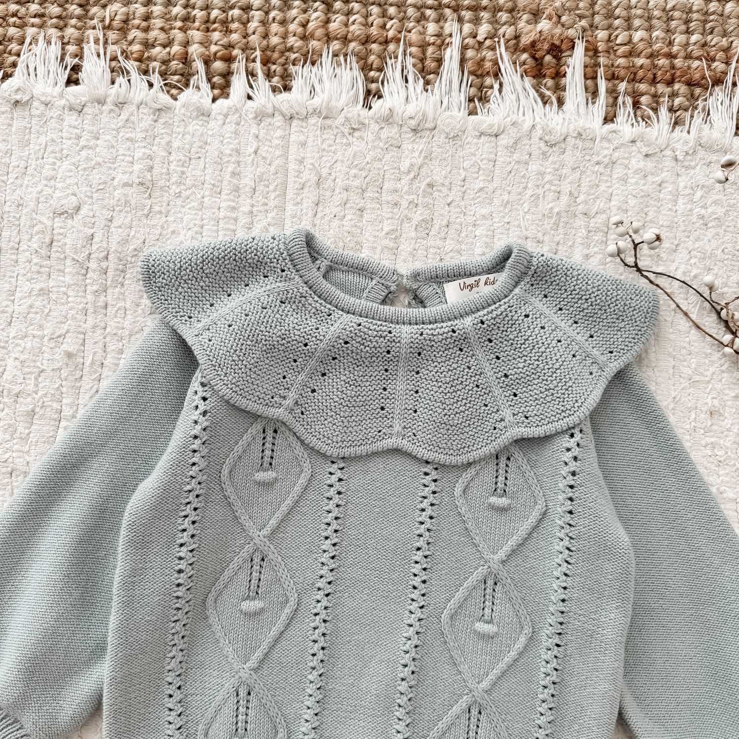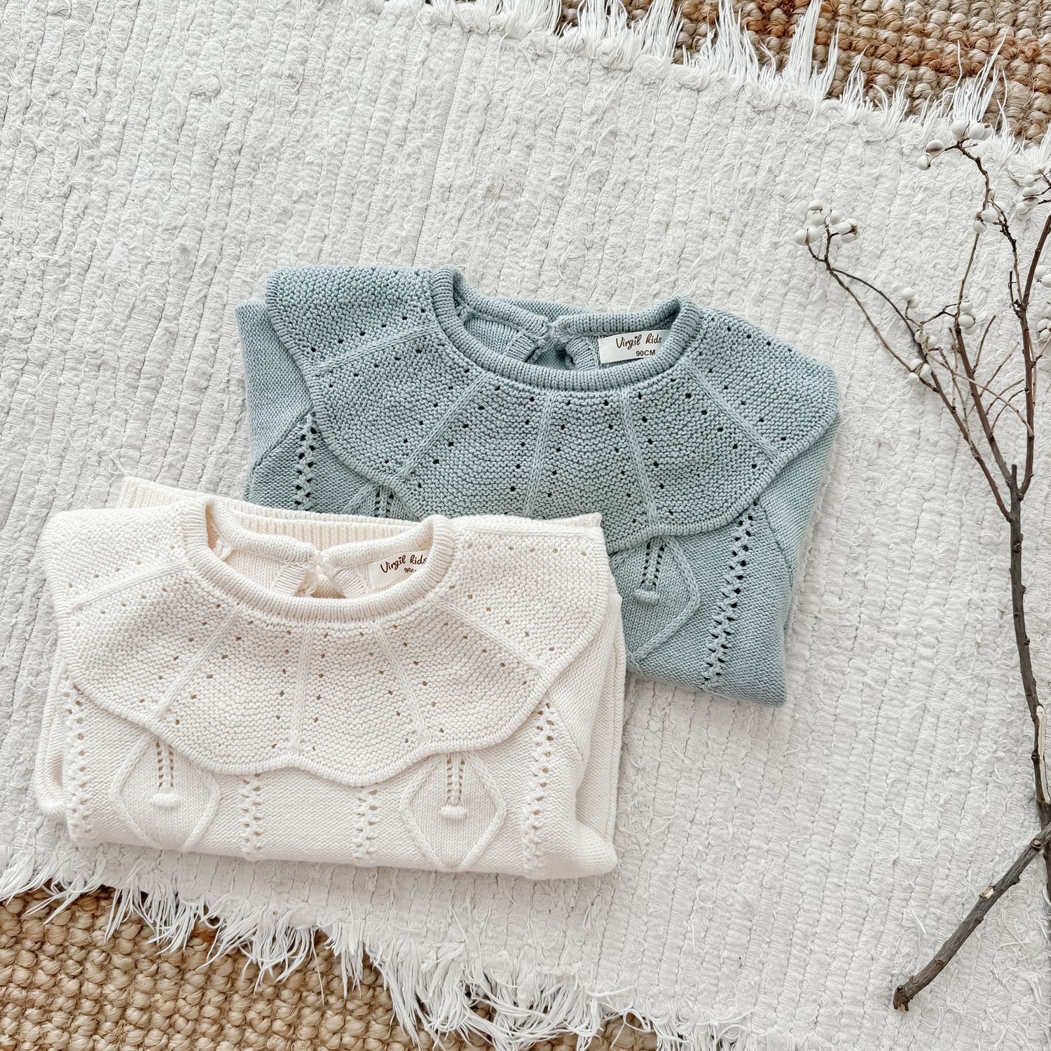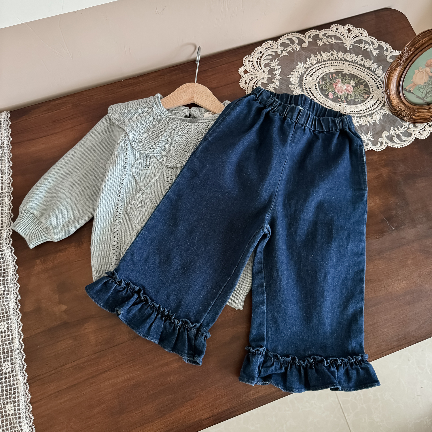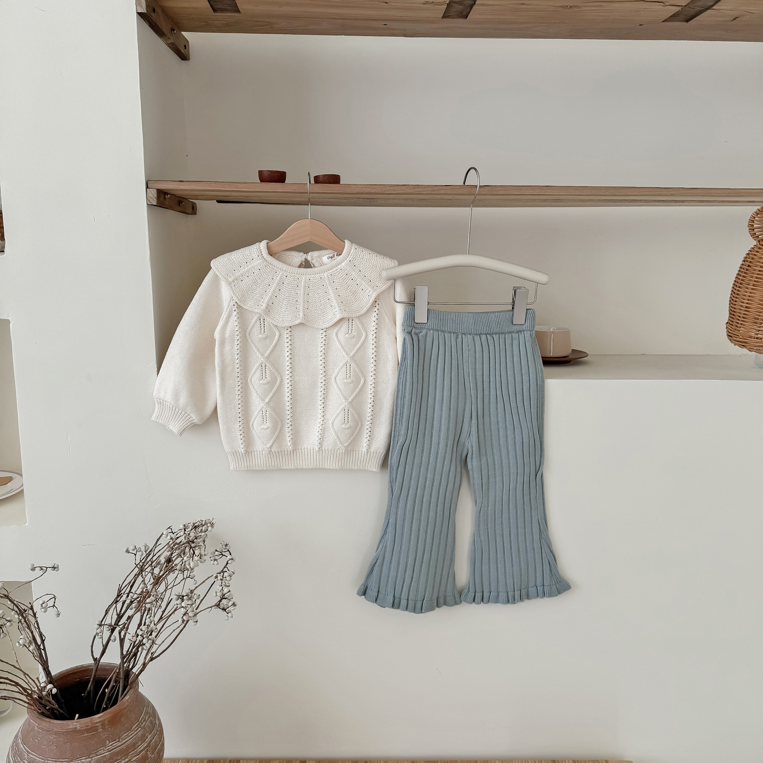 가을과 겨울 새로운 소녀 스웨터 Ins 아기 소녀 귀여운 연꽃 잎 고리 풀오버 스웨터 면 원사 레이스 칼라 스웨터