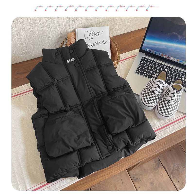 2025년 신형 아동용 더블 칼라 면 조끼, 중대형 아동 및 여아용 패셔너블한 어깨 조끼스토어 가기