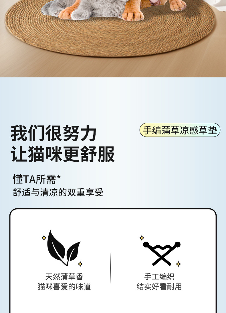 도매 cattail 고양이 긁기 보드 대형 연삭 발톱 고양이 장난감 내마모성 긁힘 방지 고양이 둥지 등나무 애완 동물 고양이 수면 패드스토어 가기