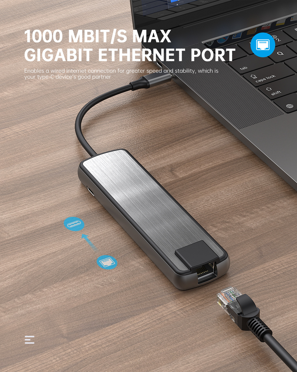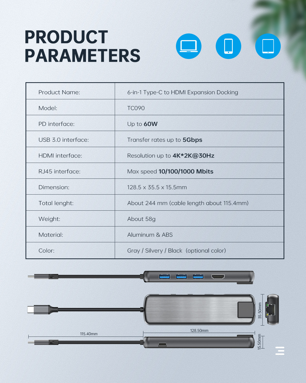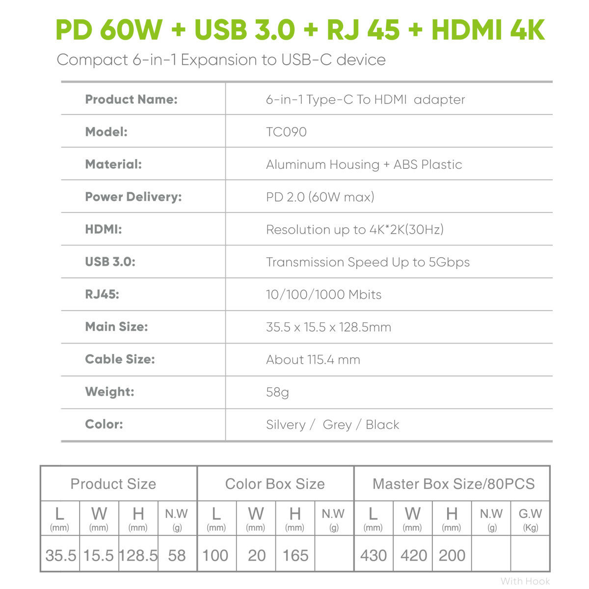 Type-c 기가비트 포트 도킹 스테이션 6-in -1 USB3.0 PD USB 컴퓨터 지점 고속 변환 허브