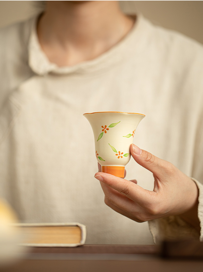 Jingdezhen 손으로 그린 봄 차 컵 세라믹 차 세트 향기로운 컵 마스터 컵 차 시음 컵 홈 오피스 쿵푸 차 세트