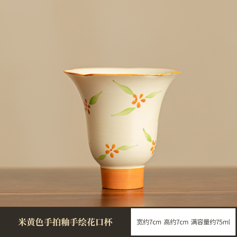 • 베이지 색 손 유약 손으로 그린 꽃 입 컵