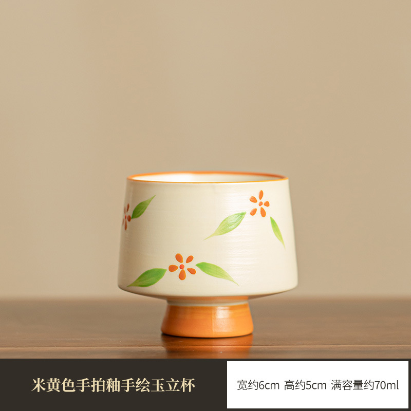 • 베이지 색 손 유약 손으로 그린 옥 서 컵
