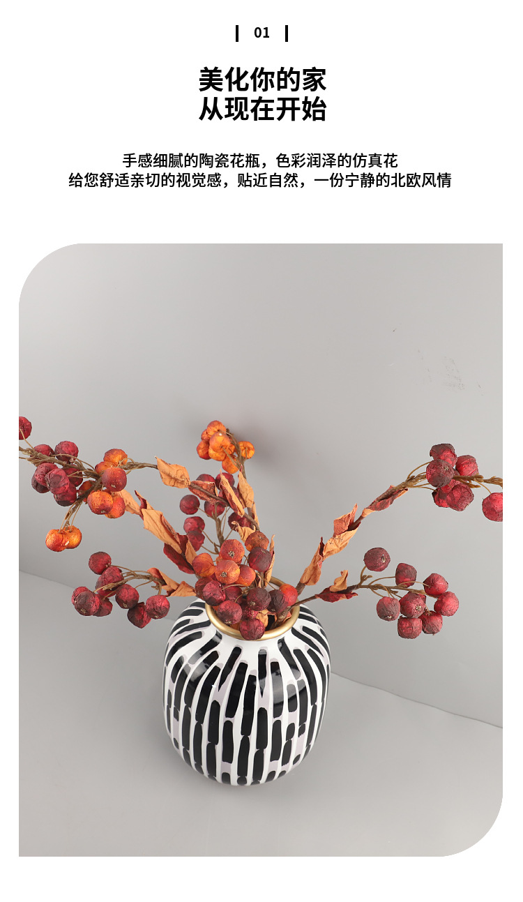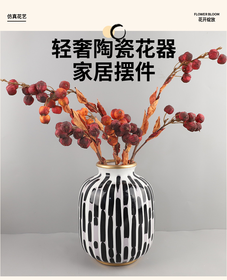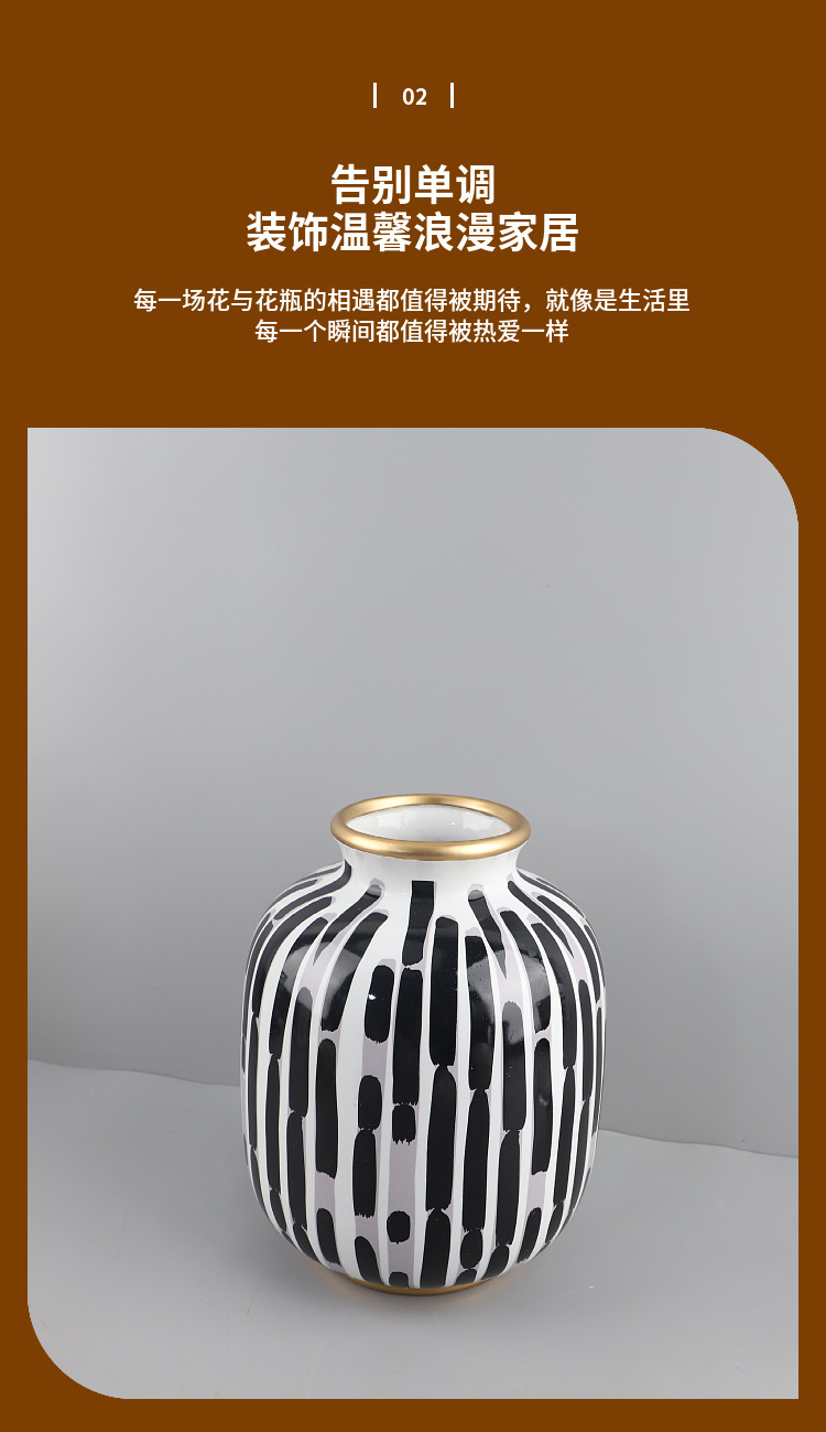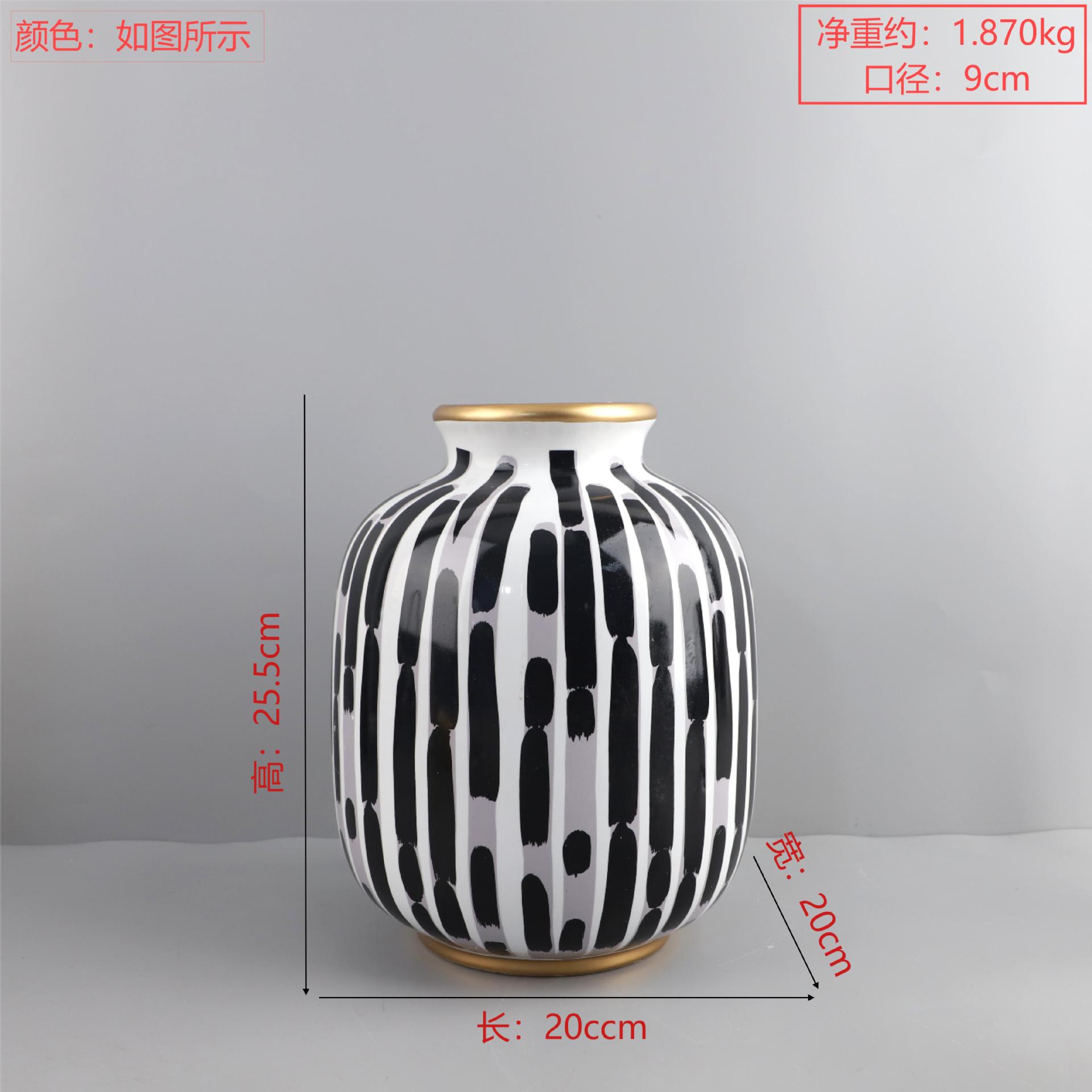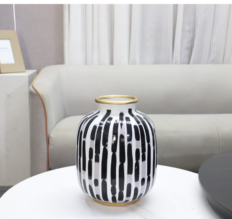 현대 간단한 흑백 줄무늬 세라믹 꽃병 장식품 거실 식당 침실 TV 캐비닛 홈 장식