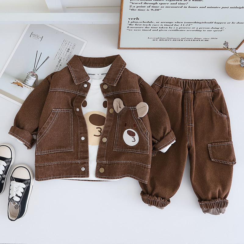 남자와 여자의 세트 아기 어린이 셔츠 전체 인쇄 영어 옷 2024 가을 3 조각 세트 소년 아기스토어 가기