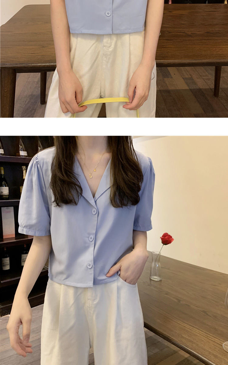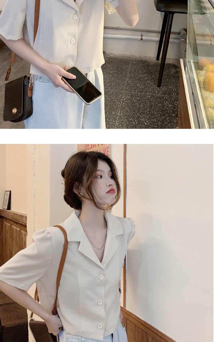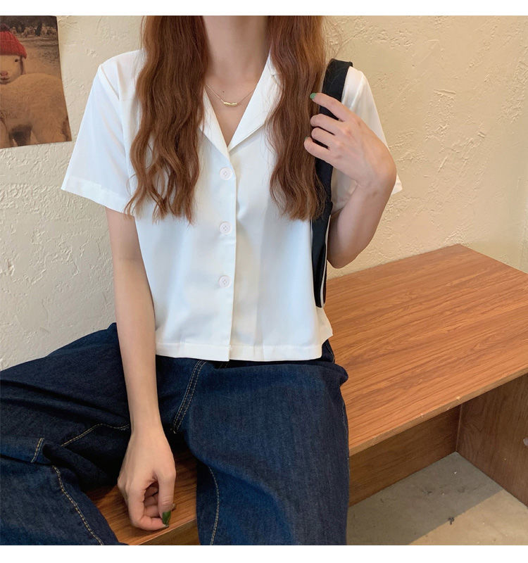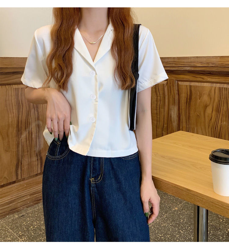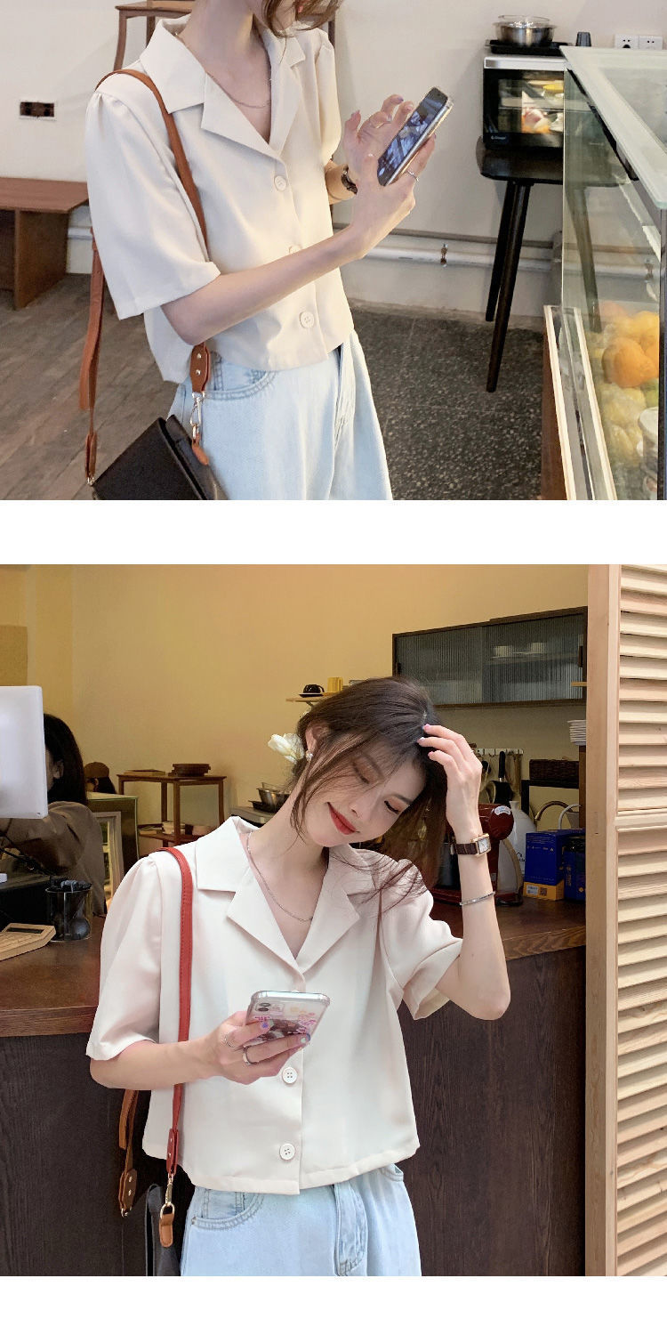 짧은 세련된 탑 디자인 센스 원피스 칼라 쉬폰 셔츠 여름 2025 새로운 슬림 룩 짧은 소매 셔츠 홍콩 맛스토어 가기