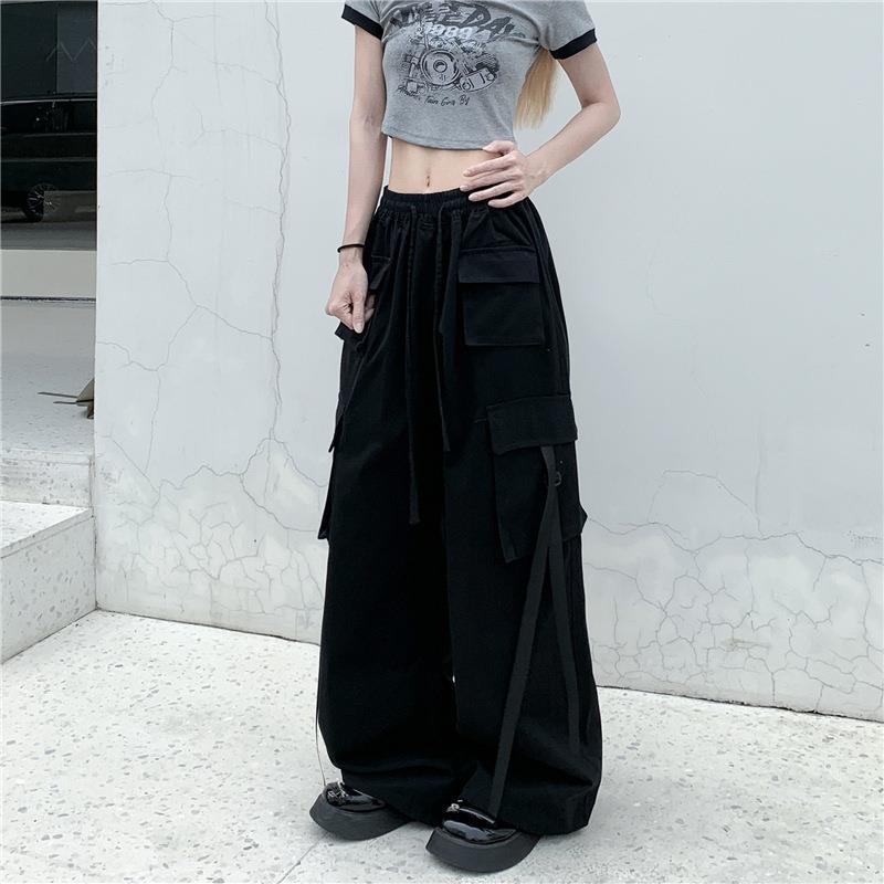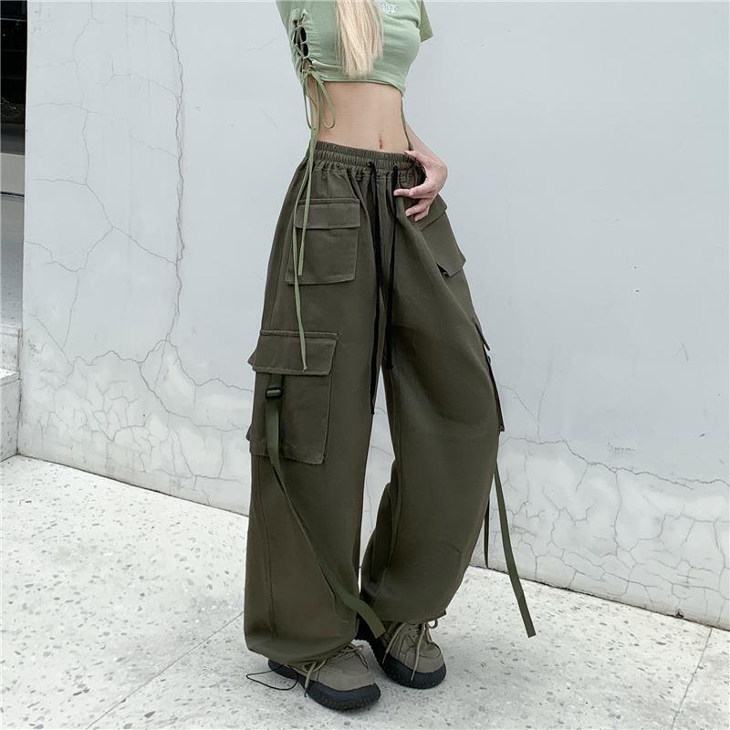 2023 아메리칸 스타일 레트로 대형 툴링 포켓 레드 하이 하이 웨이스트 루즈 스트레이트 튜브 엘라스토머, 남성과 여성을위한 바지 힙합 트렌디스토어 가기