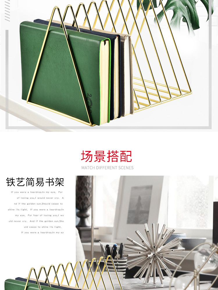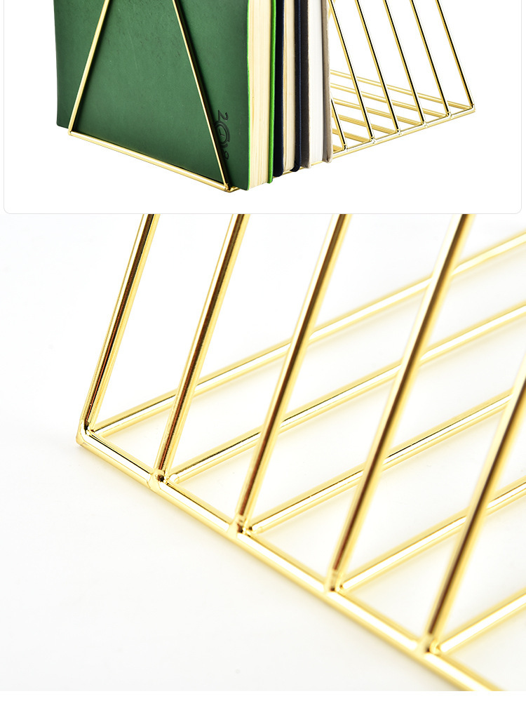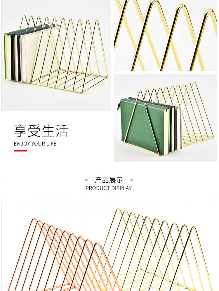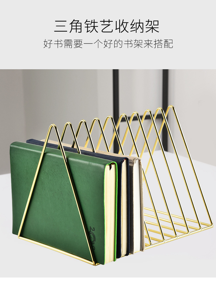 북유럽 스타일 연철 작은 책장 파일 책 저장 랙 삼각형 간단한 단철 데스크탑 장식 보관 선반