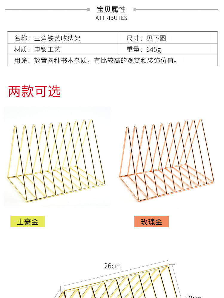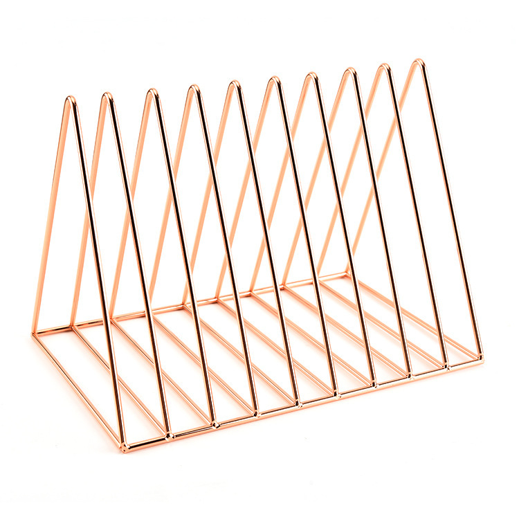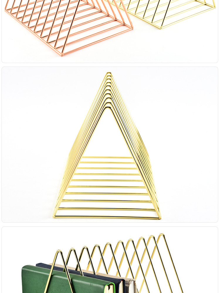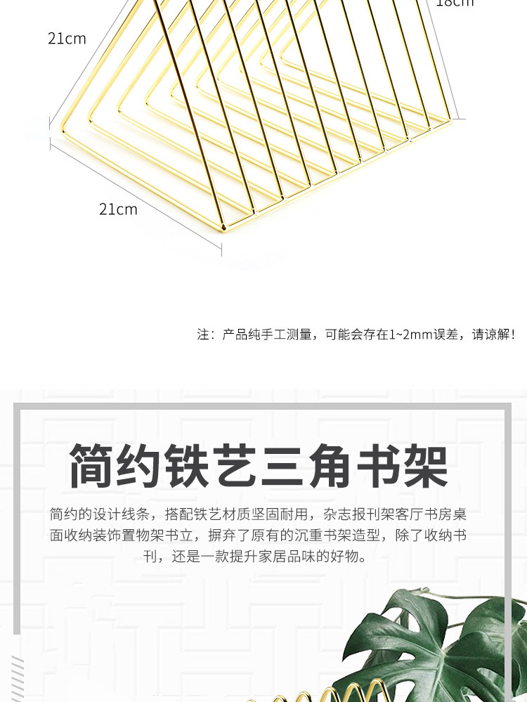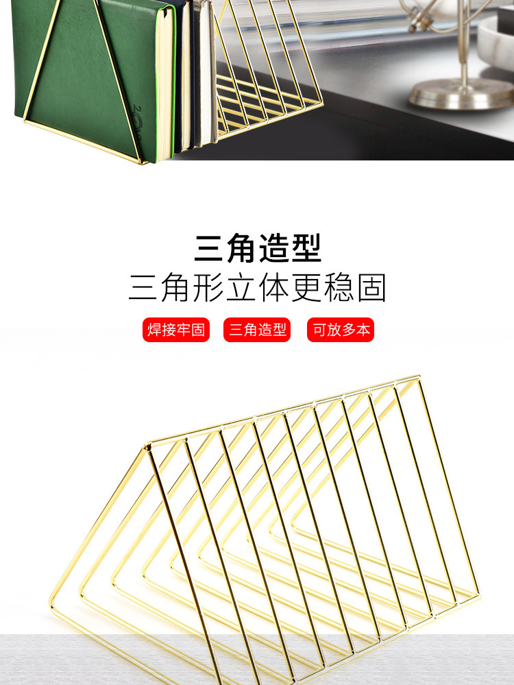 북유럽 스타일 연철 작은 책장 파일 책 저장 랙 삼각형 간단한 단철 데스크탑 장식 보관 선반