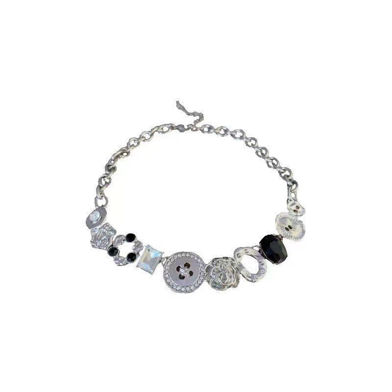 금속 중공업 Y2K 달콤한 차가운 바람 버튼 목걸이 여성용 쇄골 체인 칼라 초커 넥 링 고급 센스 넥 체인 쿨