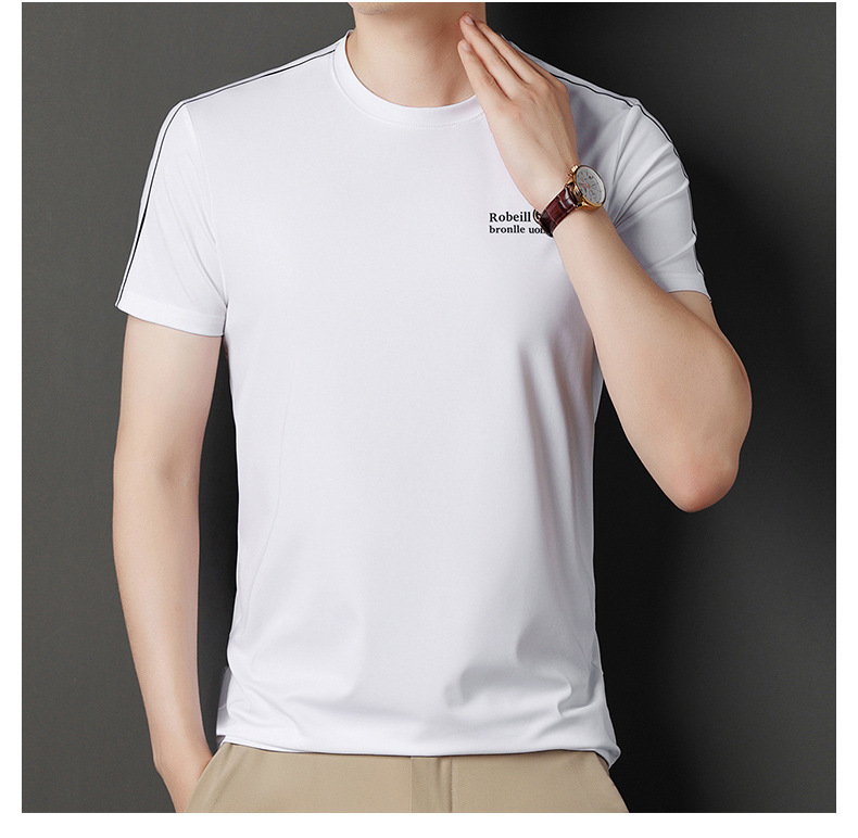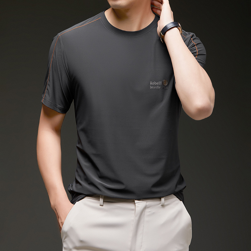 TikTok 폭발 아이스 실크 통기성 반팔 티셔츠 남성 여름 비즈니스 캐주얼 리프레시 통기성 탄성 피부 친화적이고 부드러운