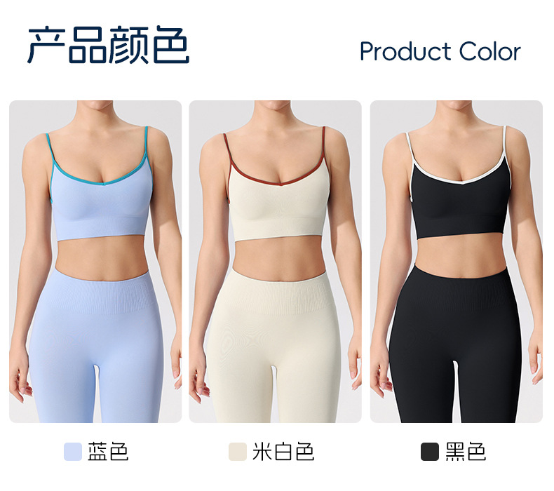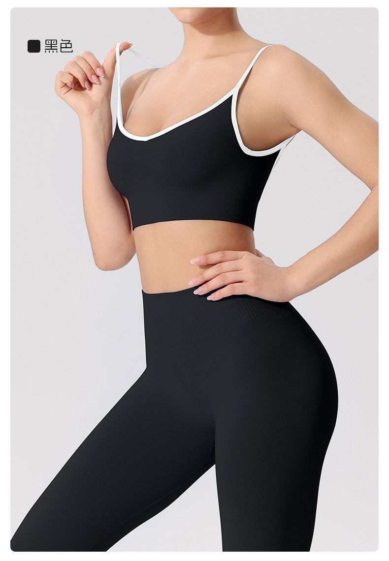 欧美瑜伽背心女吊带固定杯细肩带健身文胸美背一体式胸垫运动内衣