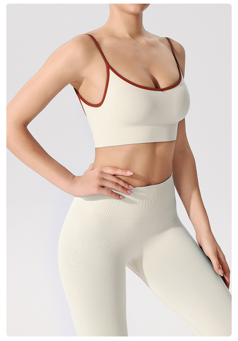 유럽과 미국의 요가 조끼 여자 슬링 고정 컵 얇은 어깨 끈 피트니스 브래지어 아름다운 등 통합 가슴 패드 스포츠 속옷