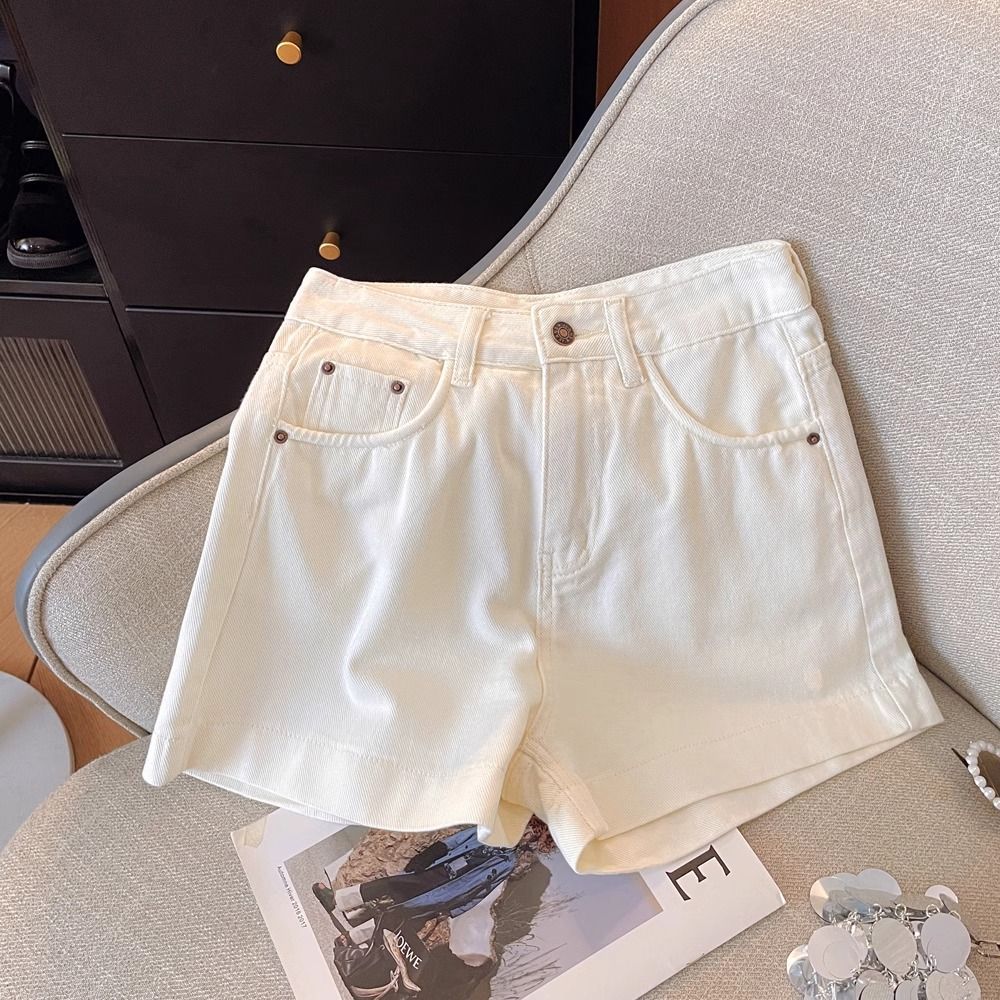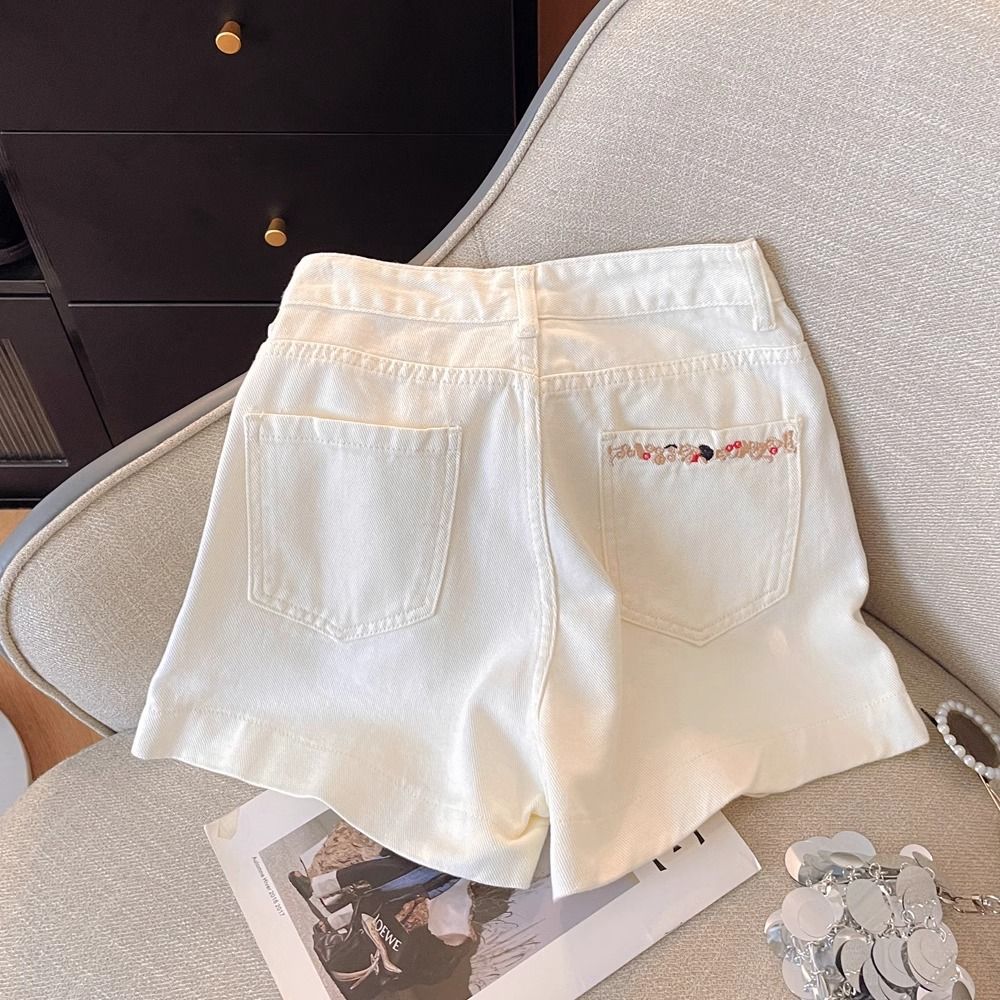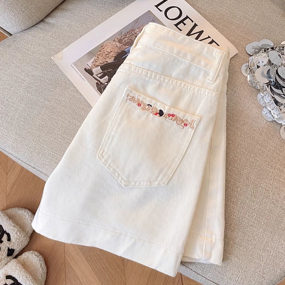 여성을위한 흰색 자수 스트레이트 데님 반바지 여름 새로운 스타일 하이 웨이스트 루즈 슬리밍 a 라인 와이드 레그 핫팬츠 얇은
