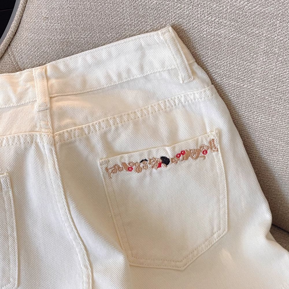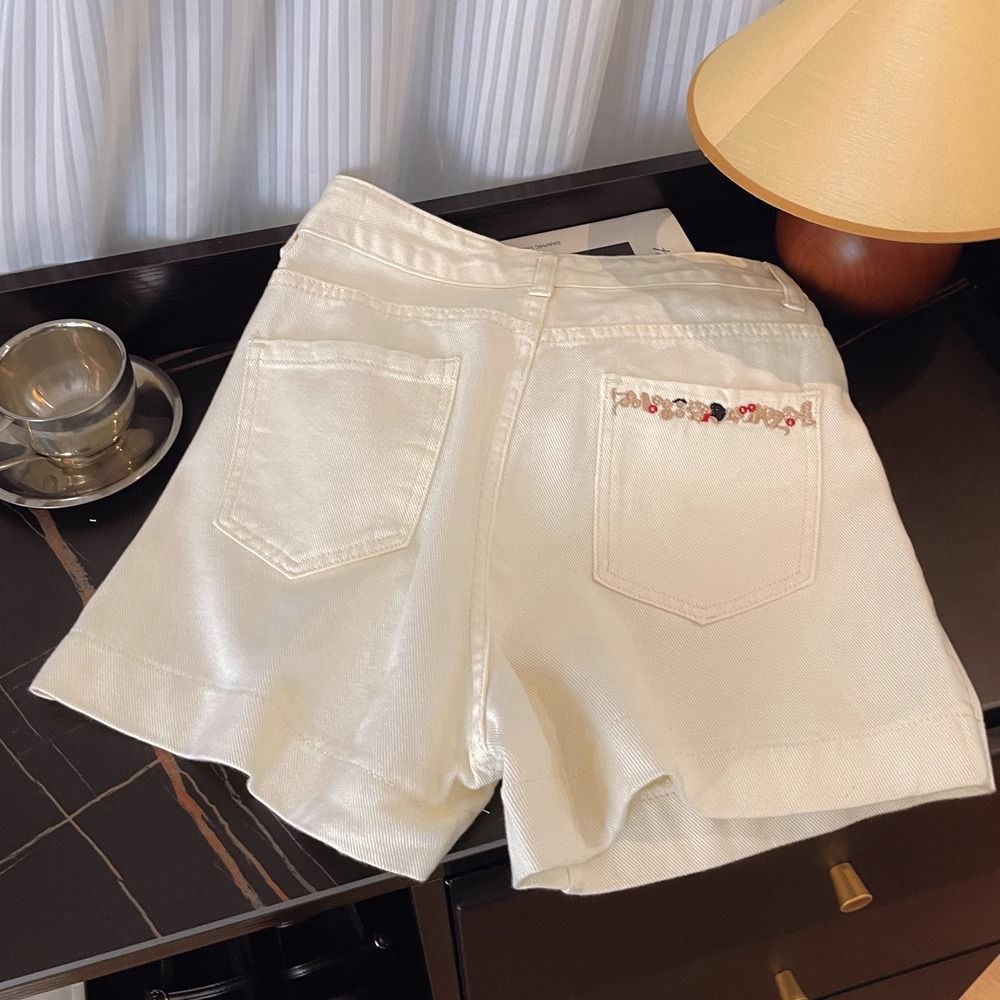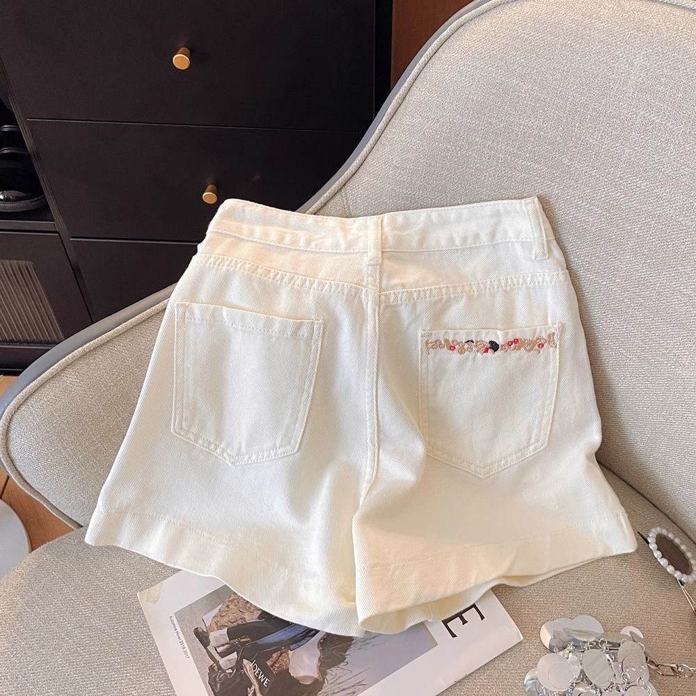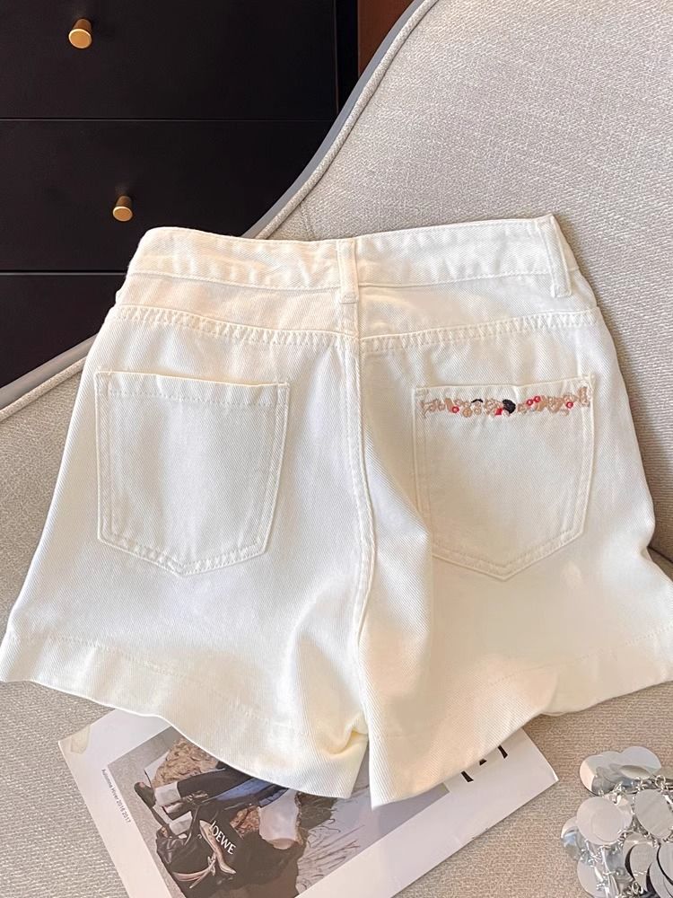 여성을위한 흰색 자수 스트레이트 데님 반바지 여름 새로운 스타일 하이 웨이스트 루즈 슬리밍 a 라인 와이드 레그 핫팬츠 얇은스토어 가기