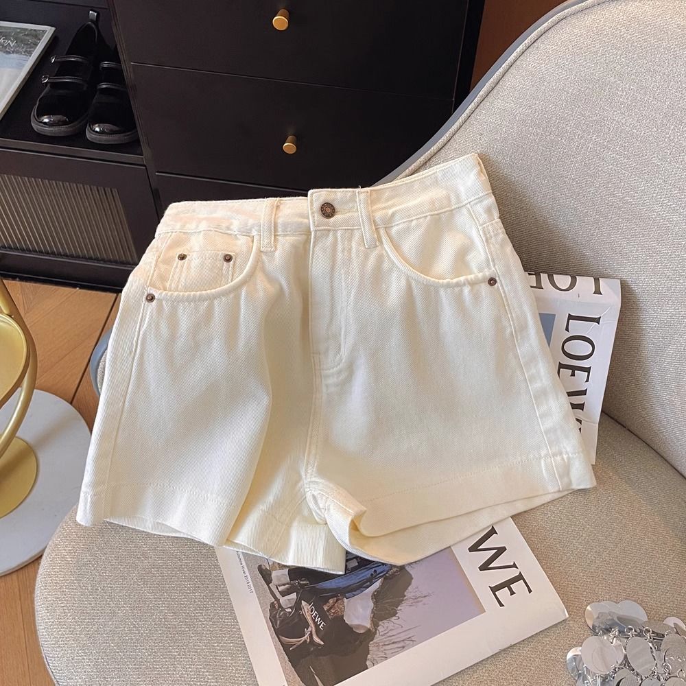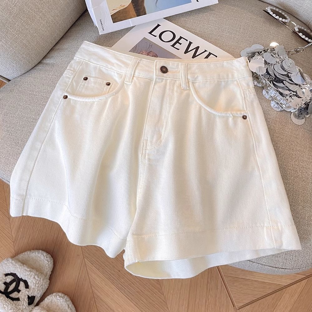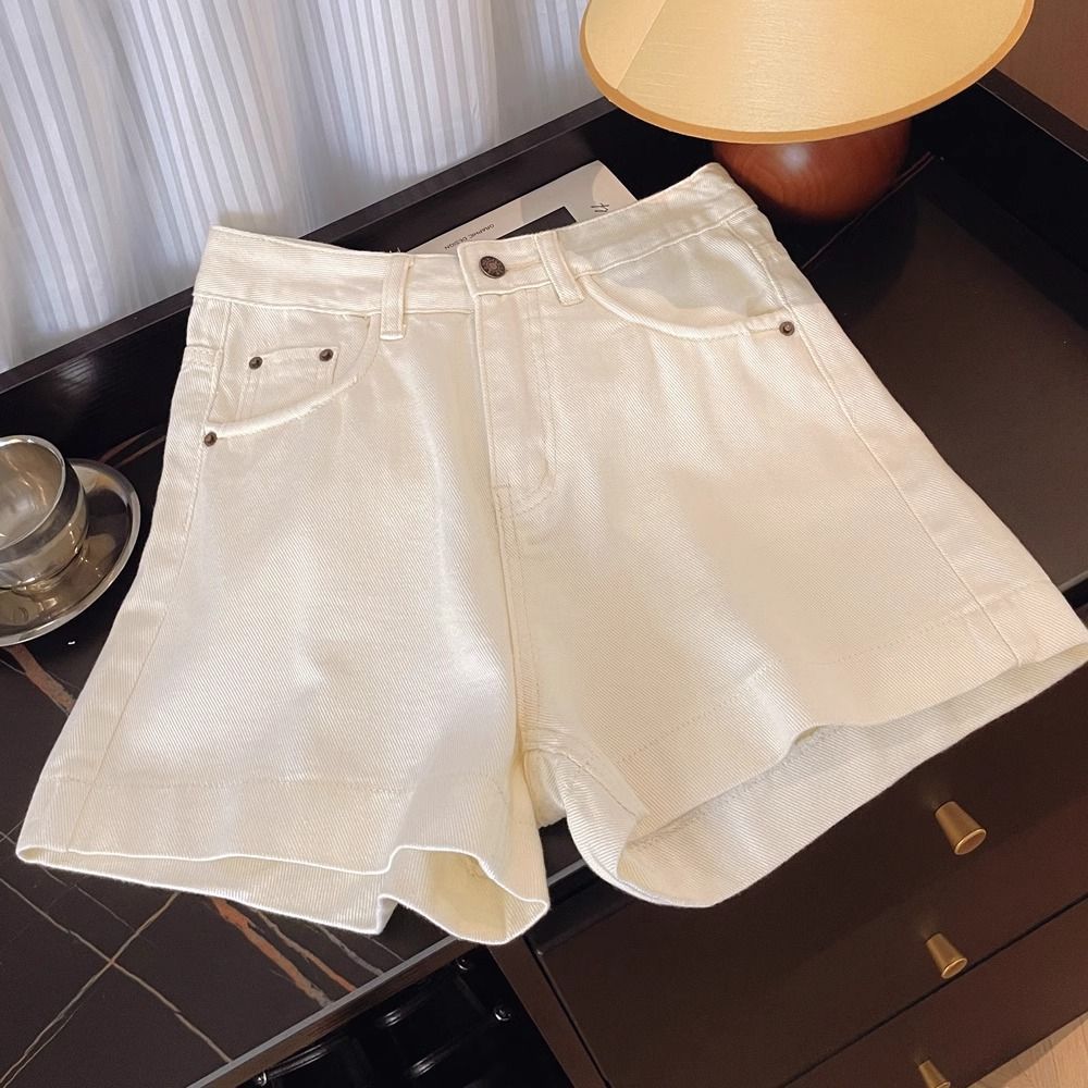 여성을위한 흰색 자수 스트레이트 데님 반바지 여름 새로운 스타일 하이 웨이스트 루즈 슬리밍 a 라인 와이드 레그 핫팬츠 얇은스토어 가기