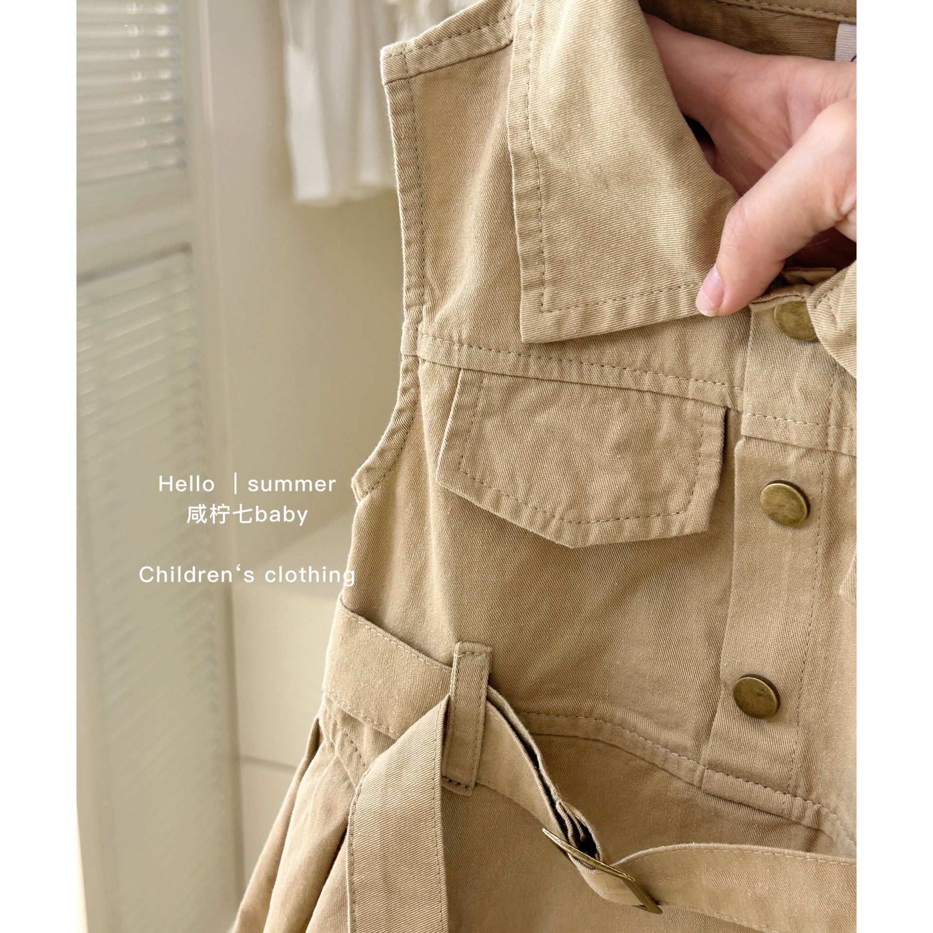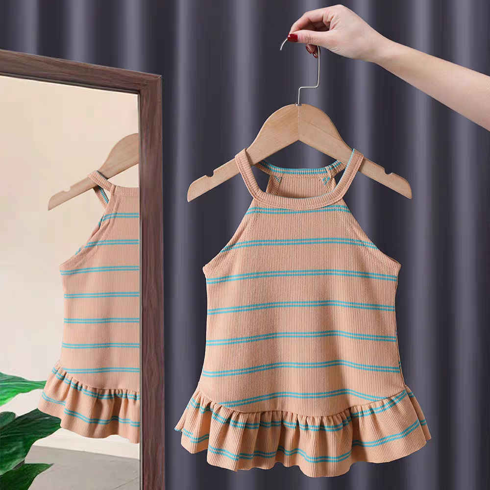 작은 소녀들을 위한 여름 민소매 원피스, 아기들을 위한 디자인감 있는 워크웨어 원피스, 캔디 요소가 있는 트렌디한 조끼 원피스