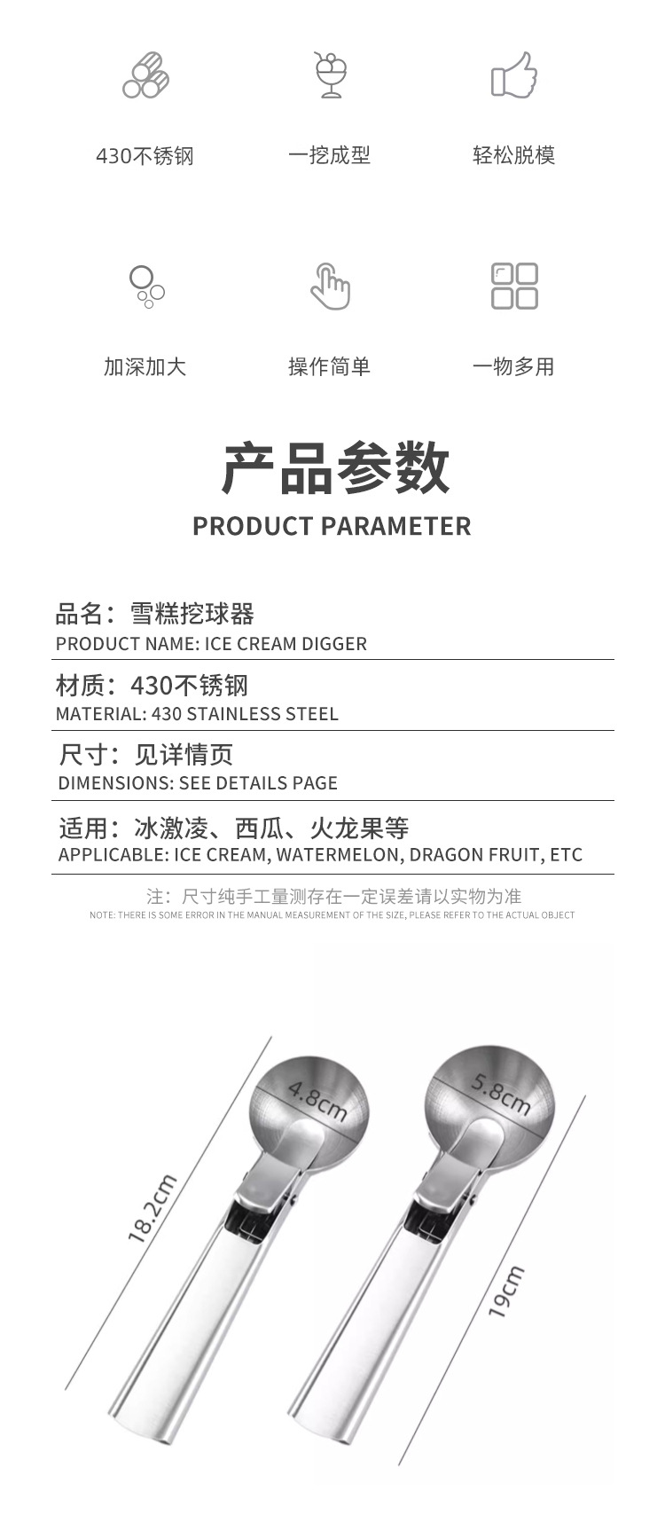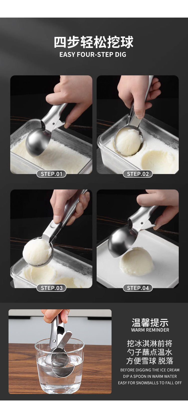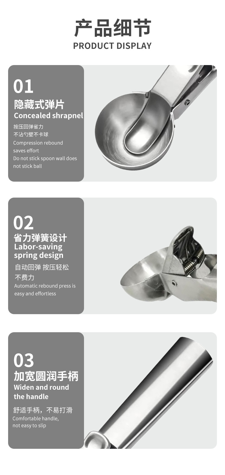 스테인레스 스틸 아이스크림 스푼 리바운드 아이스크림 스푼 다기능 과일 아이스크림 스푼 디저트 스푼 과일 볼 파는 사람
