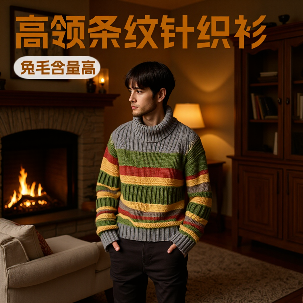 유럽과 미국은 가을과 겨울에 새로운 캐주얼 풀오버 남성용 스웨터 스트라이프 하이 칼라 긴팔 스웨터 남성