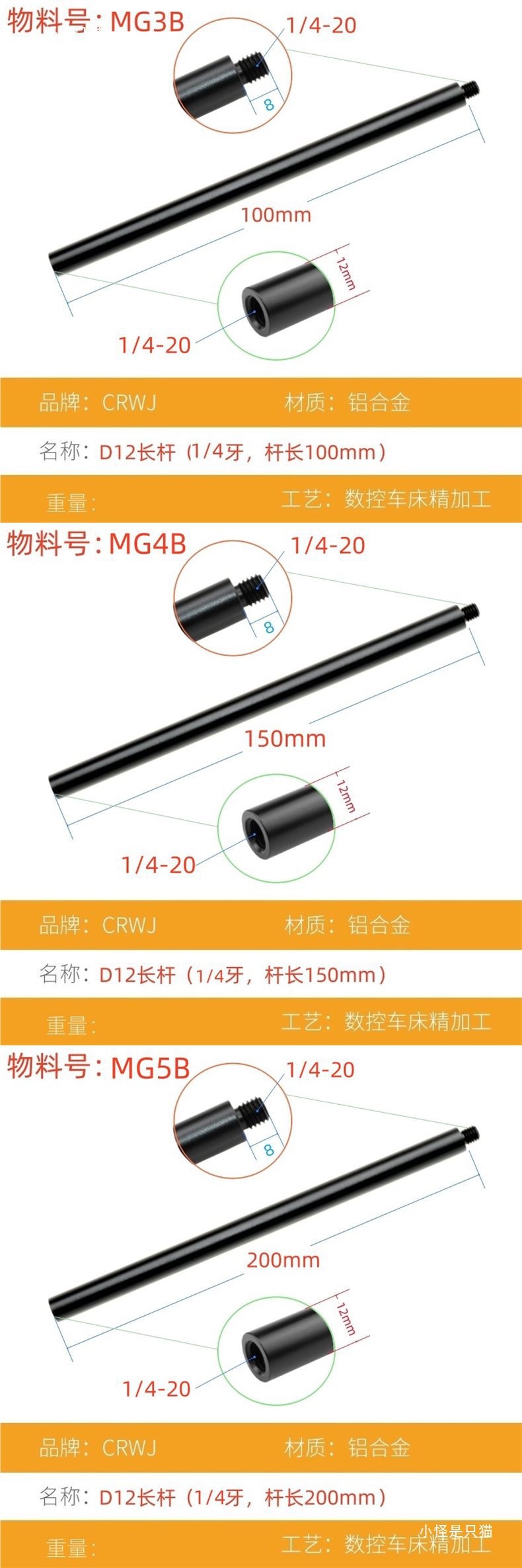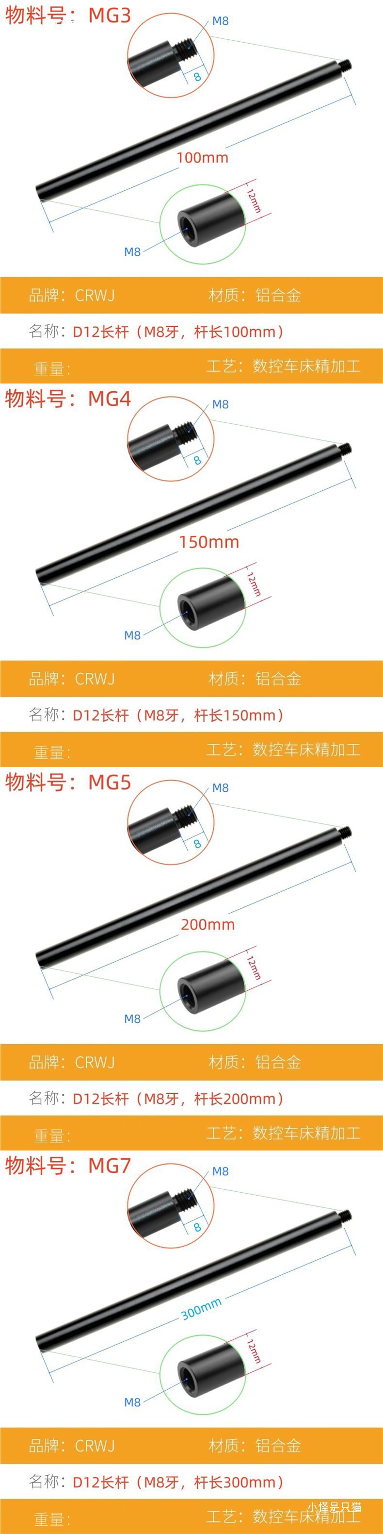 • MG5 (직경 12mm M8 나사, 전체 길이 208mm)