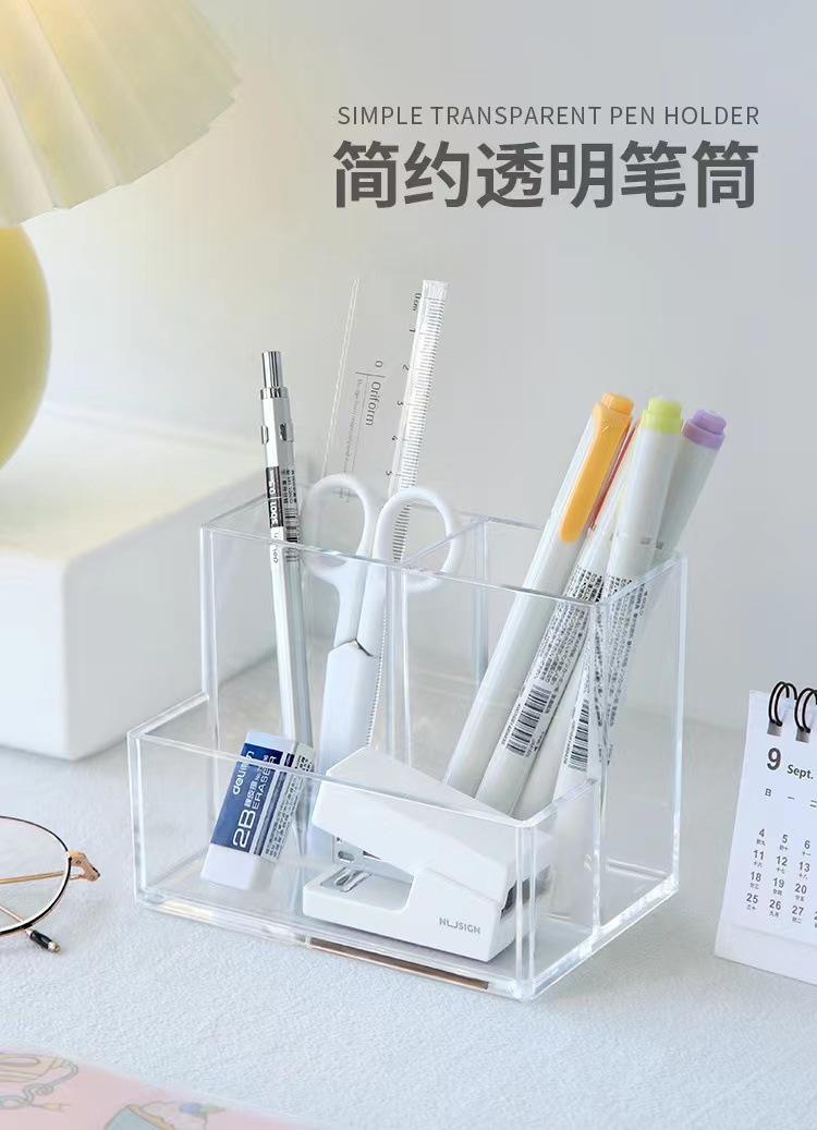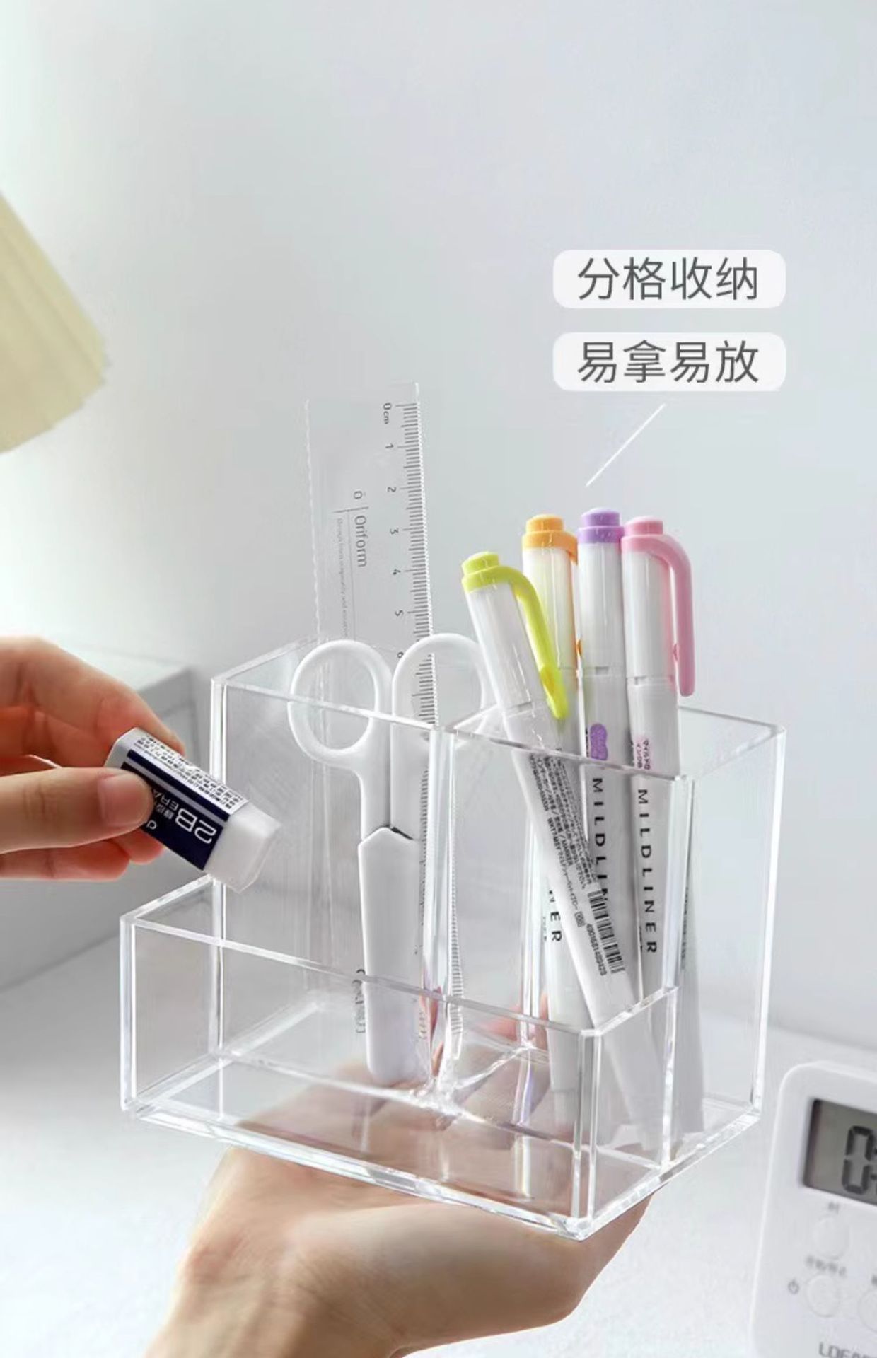 투명한 아크릴 투명 펜 홀더 대용량 학생 어린이 책상 다기능 문구 보관 상자