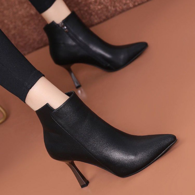 짧은 굽 부츠 여자 가을 겨울 2024 새로운 올매치 포인팅 하이힐 여자 스틸레토 신발 여자 기모 여자 알몸 부츠스토어 가기
