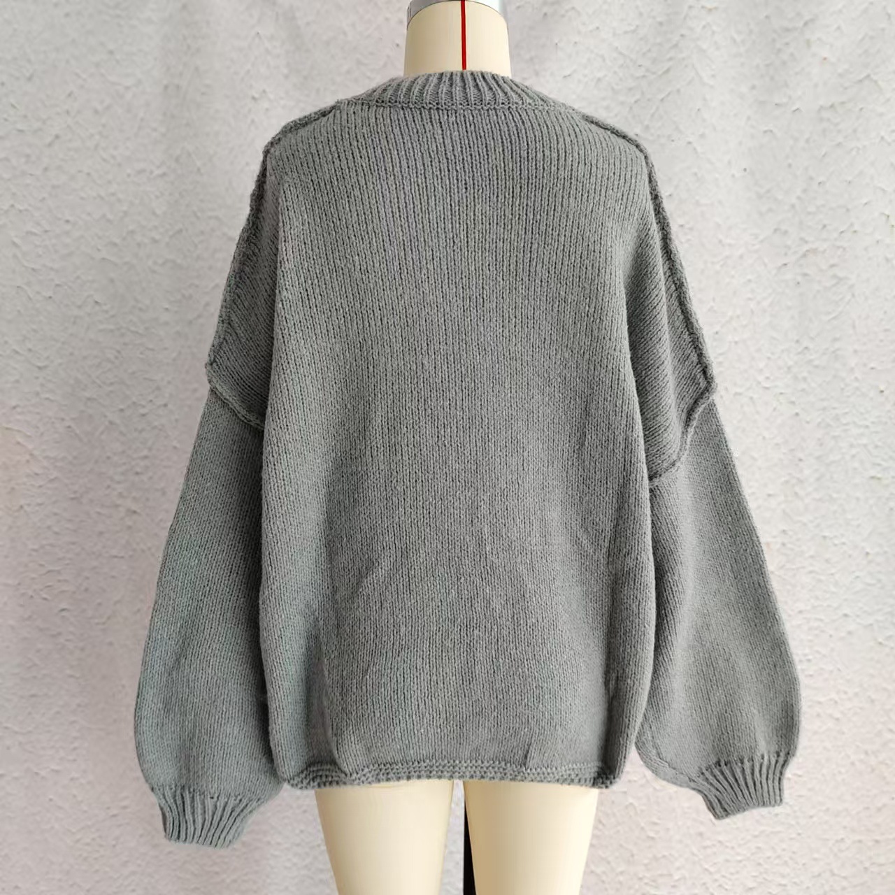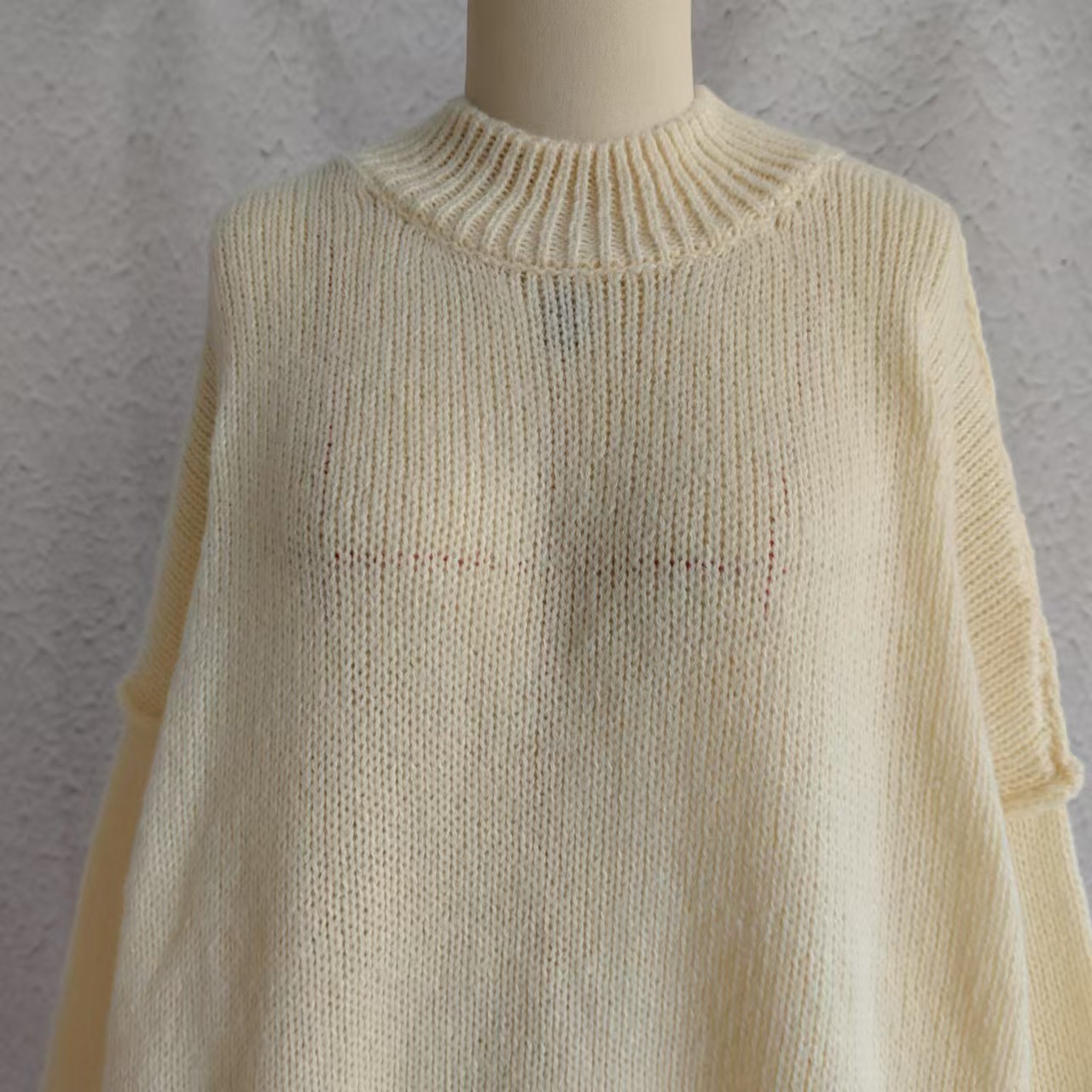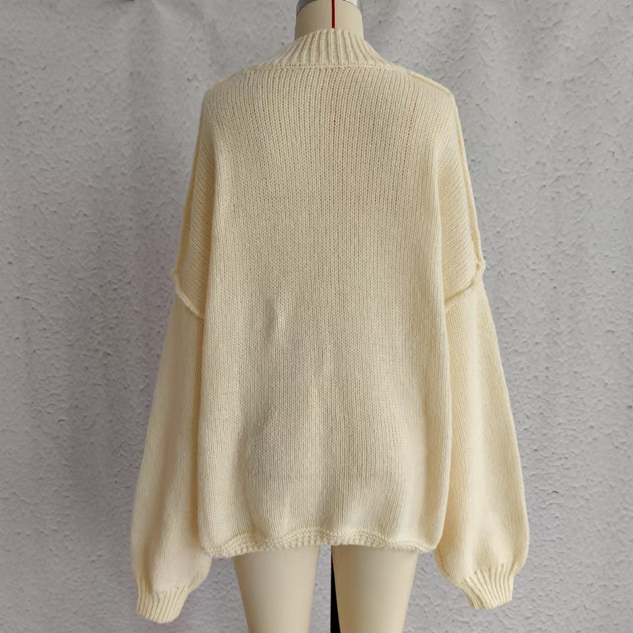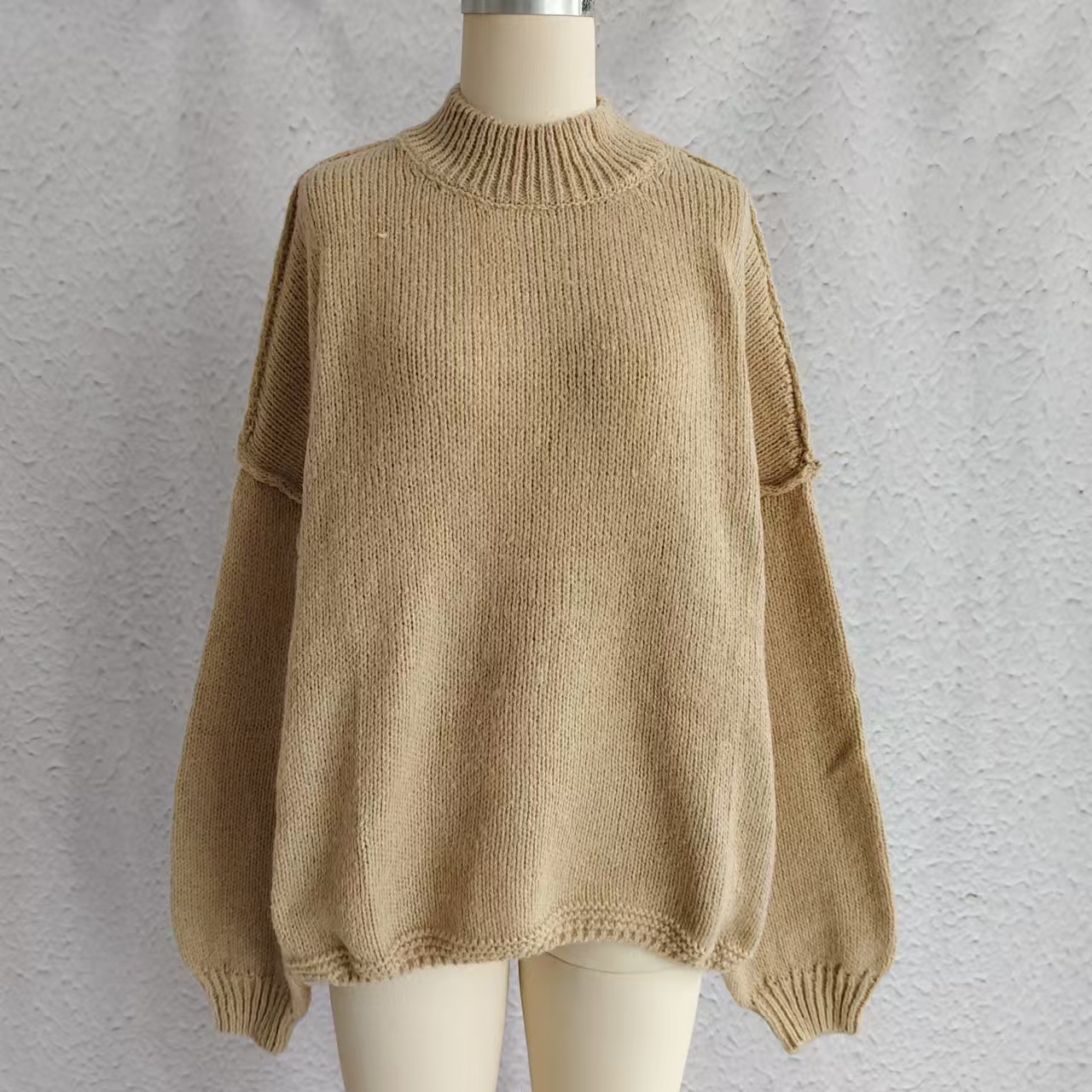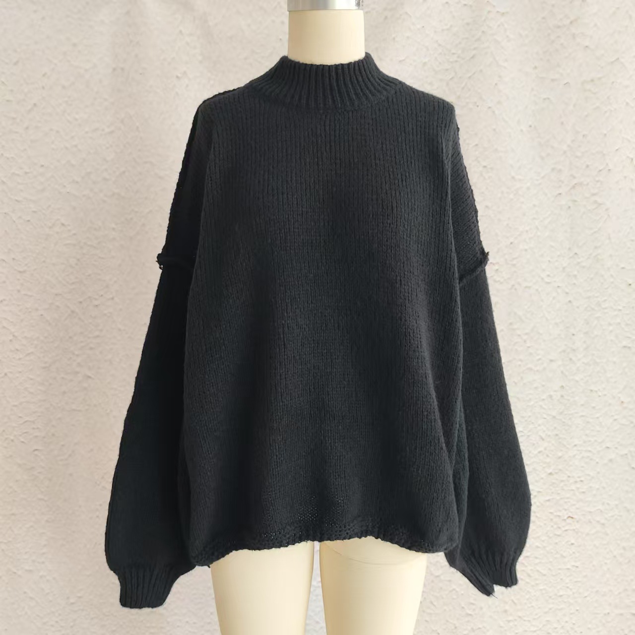 국경 간 아마존 가을과 겨울 새로운 느슨한 반 터틀넥 통근 바람 가짜 여성용 니트 풀오버 솔리드 컬러 스웨터