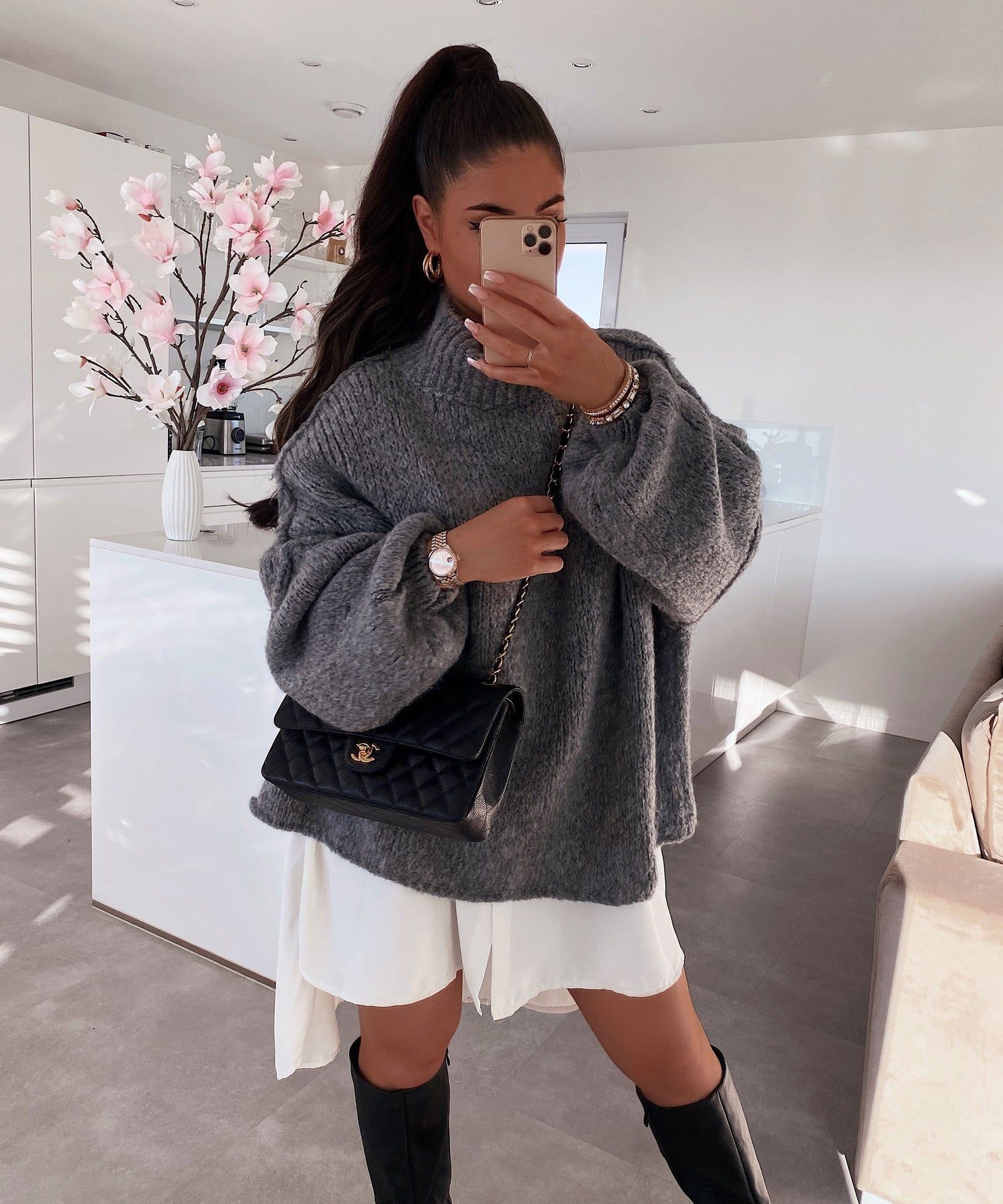 국경 간 아마존 가을과 겨울 새로운 느슨한 반 터틀넥 통근 바람 가짜 여성용 니트 풀오버 솔리드 컬러 스웨터스토어 가기