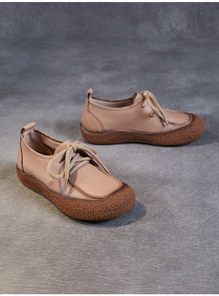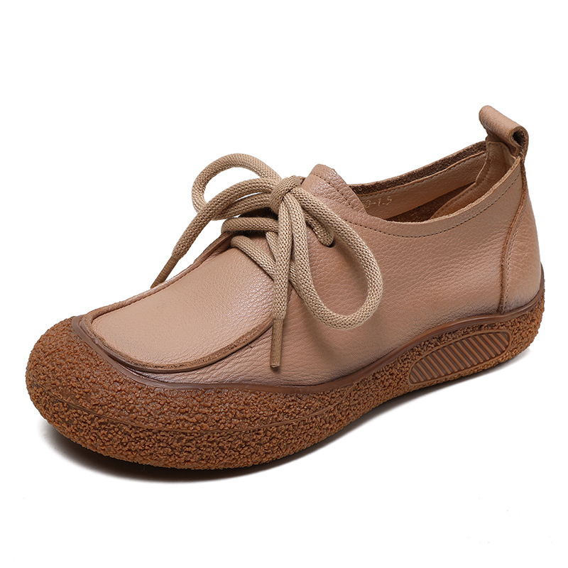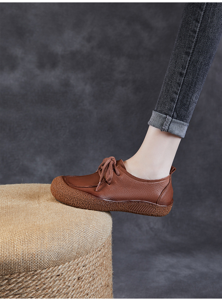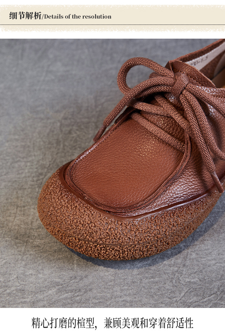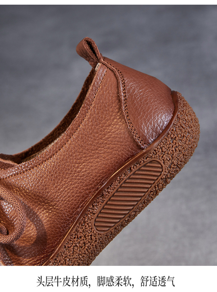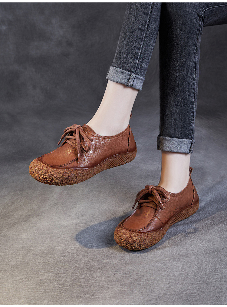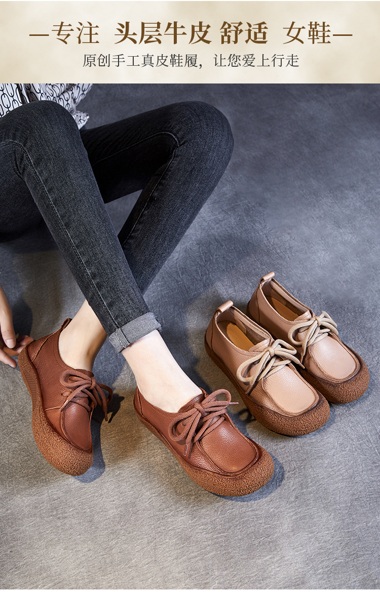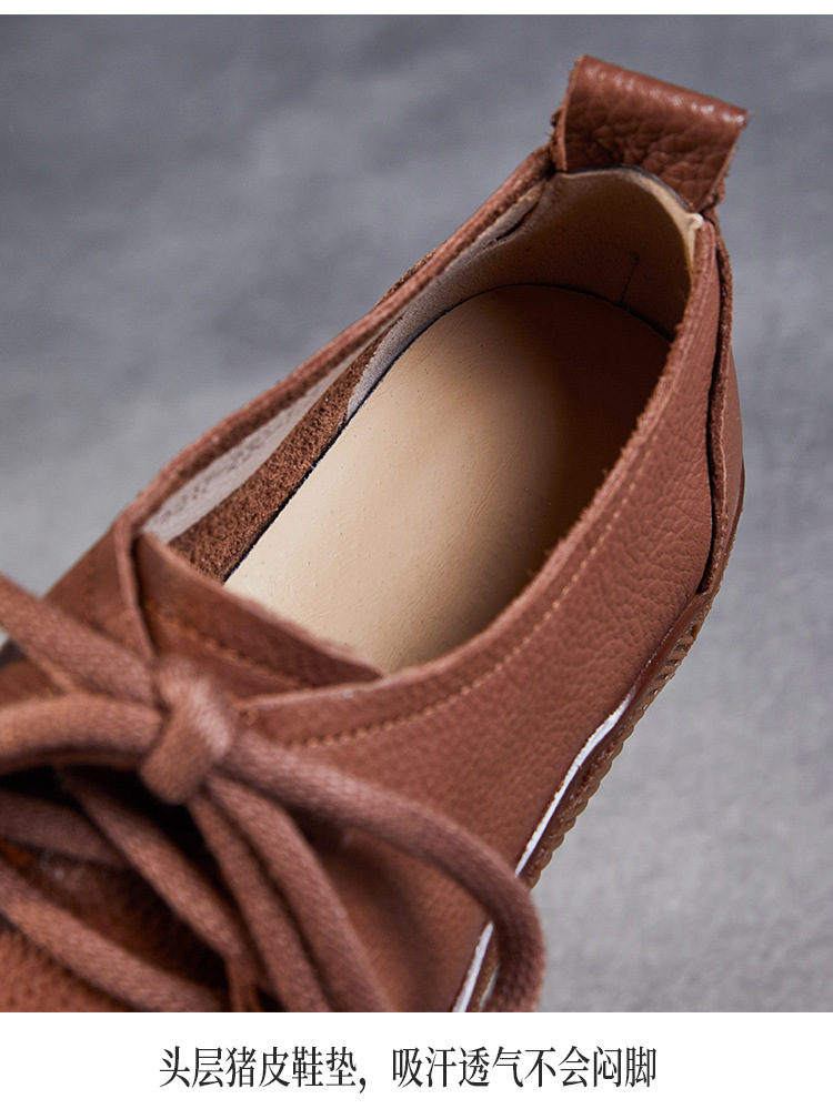 탑 레이어 소 가죽 가을 수제 캐주얼 신발 2024 빈티지 라운드 토 레이스 업 부드러운 가죽 플랫 슈즈 부드러운 밑창 모리 여성 신발스토어 가기