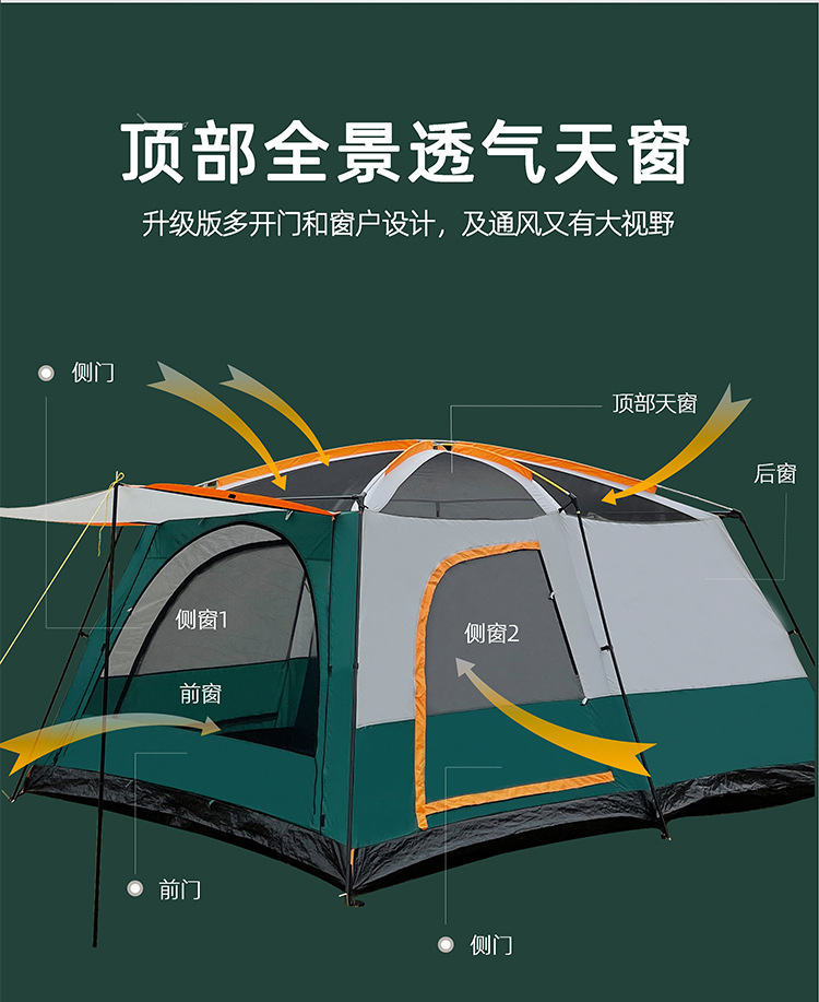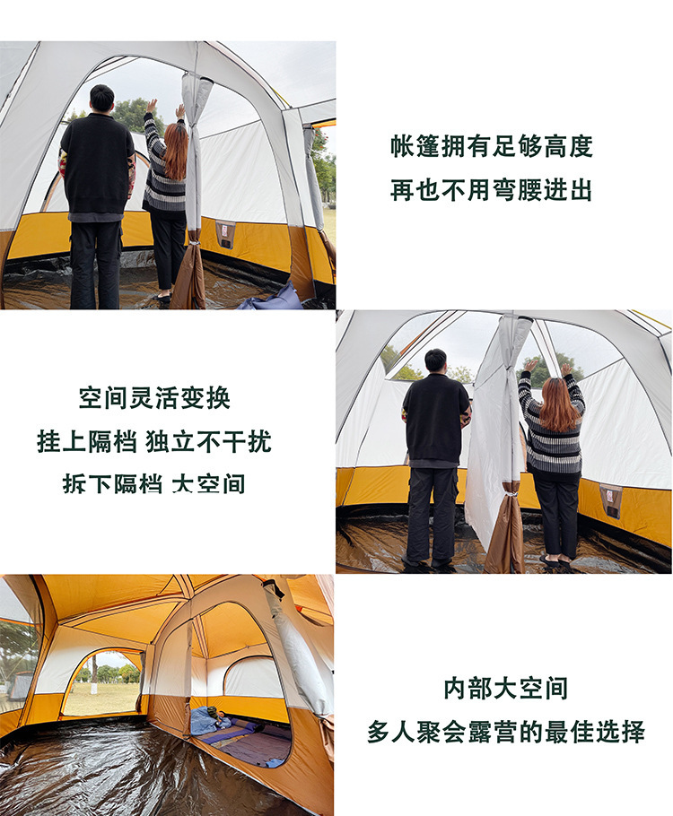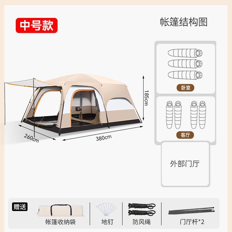 큰 텐트 야외 두꺼운 방풍 및 방비 2 방 1 홀 캠핑 장비 공급 피크닉 캠핑 휴대용 하룻밤