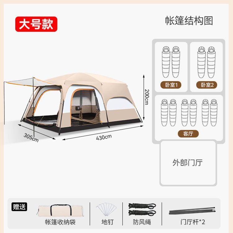 큰 텐트 야외 두꺼운 방풍 및 방비 2 방 1 홀 캠핑 장비 공급 피크닉 캠핑 휴대용 하룻밤스토어 가기