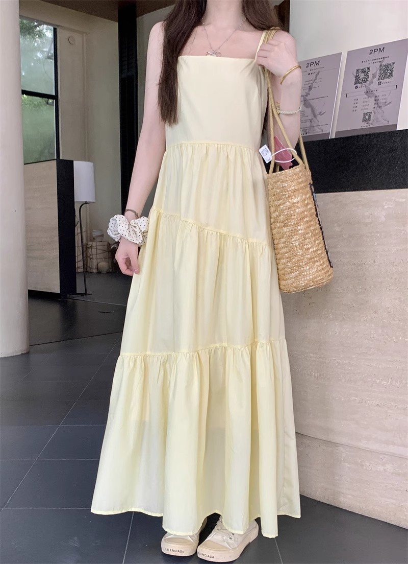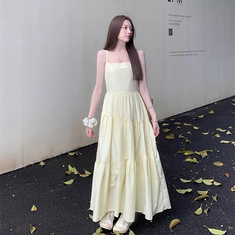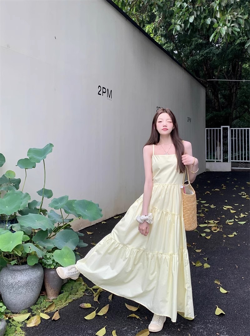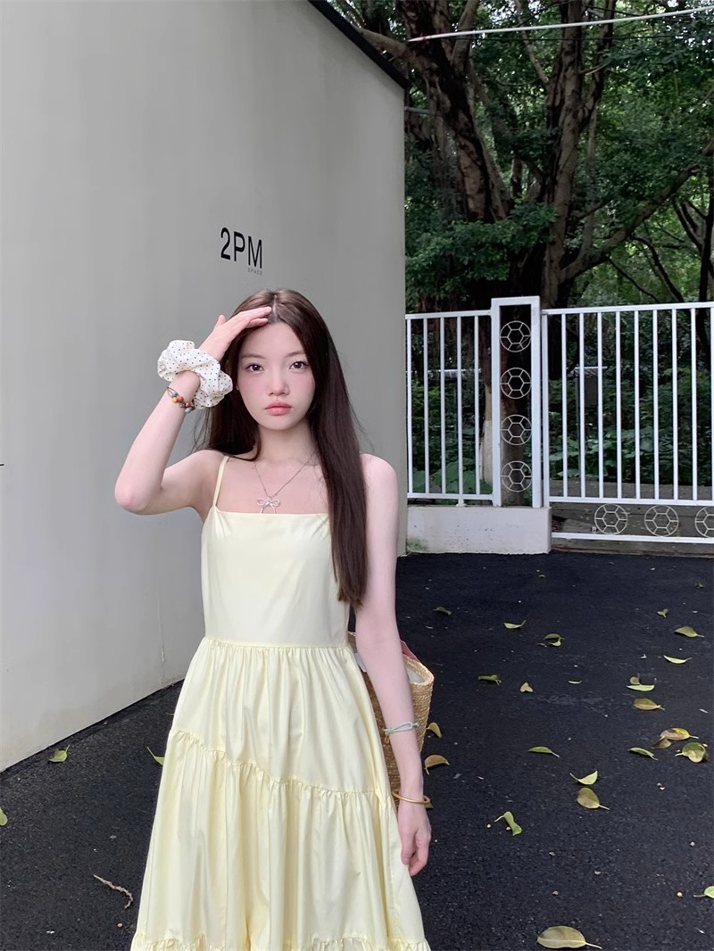 부드러운 스타일 모리 스타일 슈퍼 요정 노란색 슬링 원피스 어린이 여름 새로운 우아한 허리 슬리밍 긴 스커트스토어 가기
