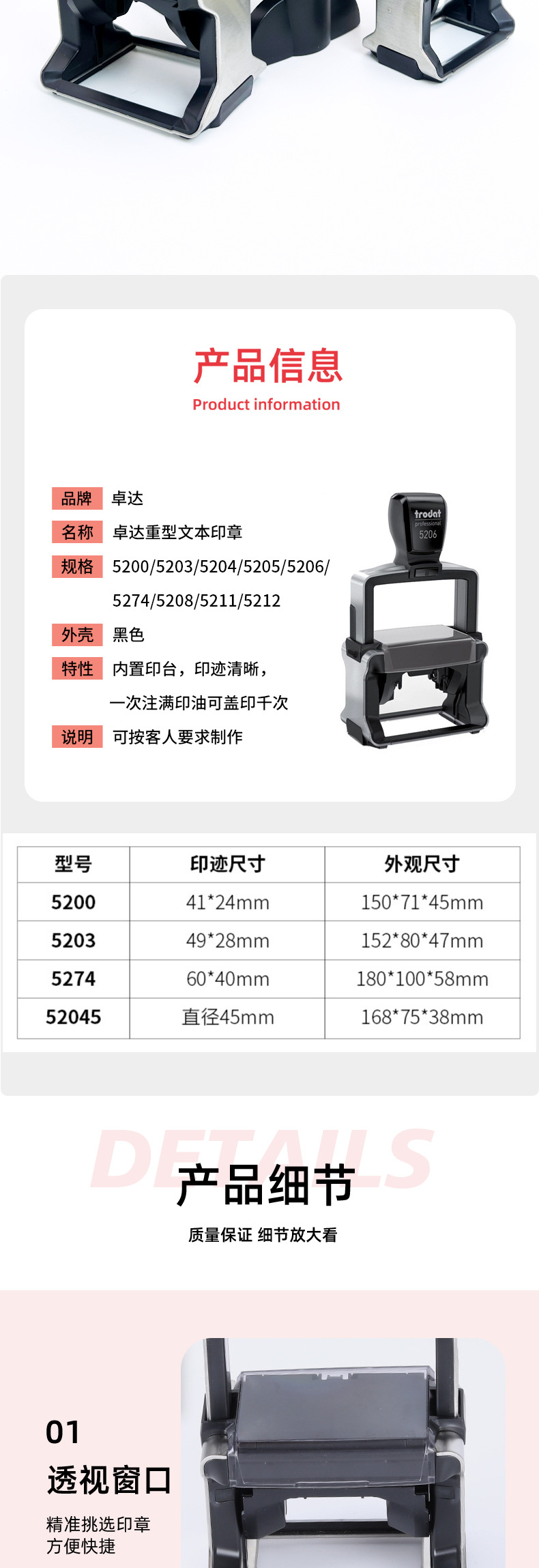 Zhuoda 무거운 텍스트 잉크 백 씰 직사각형 5208 무거운 인쇄 Duplicus 자동 잉크 백 씰 도매스토어 가기