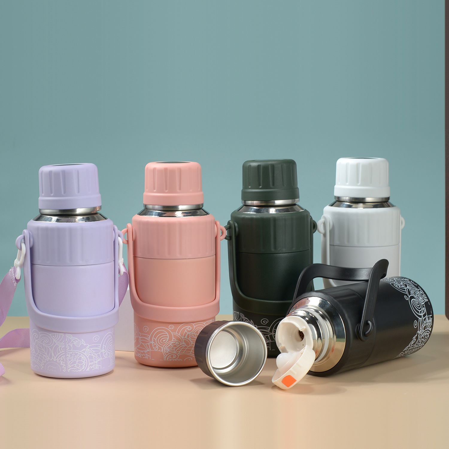 304 스테인레스 스틸 대용량 주전자 여행 주전자 스트랩 휴대용 빅 벨리 컵 등산 야외 스포츠 컵
