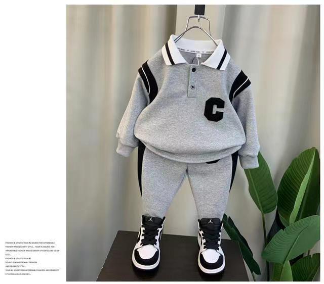 소년 세트 봄과 가을 1-6 세 잘 생긴 폴로 셔츠 긴 소매 t 가을 스포츠 투피스 아동복 도매