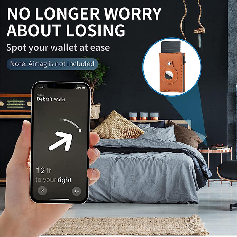아마존 에어태그 지갑 추적기 지갑 남성용 고급 센스 RDIF 도난 방지 브러쉬 트라이 폴드 탈기 방지 카드 가방스토어 가기